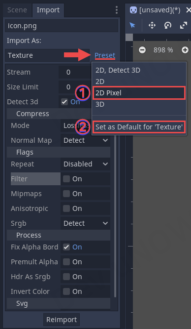 부분을 클릭해주세요. 이렇게 하면 앞으로 임포트로 가져오는 텍스처들은 이 설정에 따라