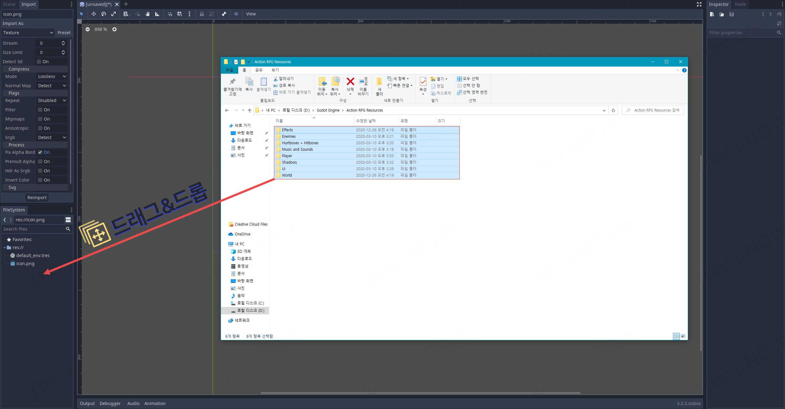 [Godot Engine] 02 - 리소스 임포트와 윈도우 해상도 조절