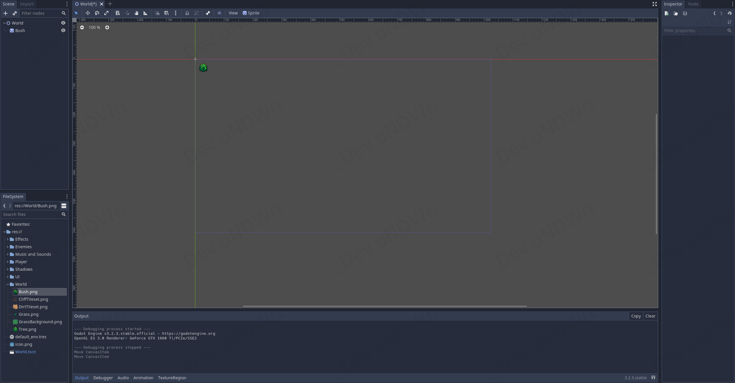 Bush.png 이미지 파일을 하나 드래그&드롭해서 뷰 포트에 배치해봅시다.