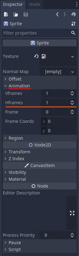 Animation을 펼치고 'Hframes'값을 조절해 볼까요?
