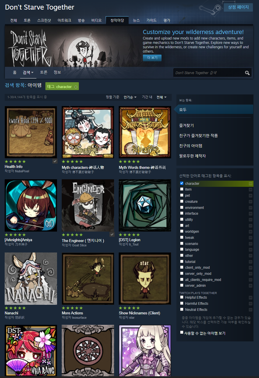 친구들이랑 창작마당에 있는 모드를 깔면서 하고 있습니다만, 몇몇 캐릭터 모드들이 밸런스가 안 맞아서 친구들이랑 하는데