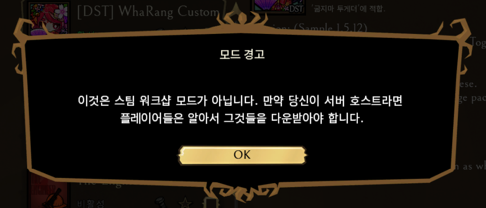 모드를 수정했기 때문에 당연히 이런 메시지가 뜹니다. 이 내용은 앞에 설명한 것과 같습니다.