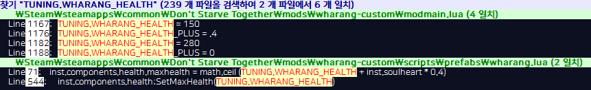 체력 변수를 수정했으니 modmain.lua에서 검색된 것은 신경 쓰지 않으셔도 됩니다.