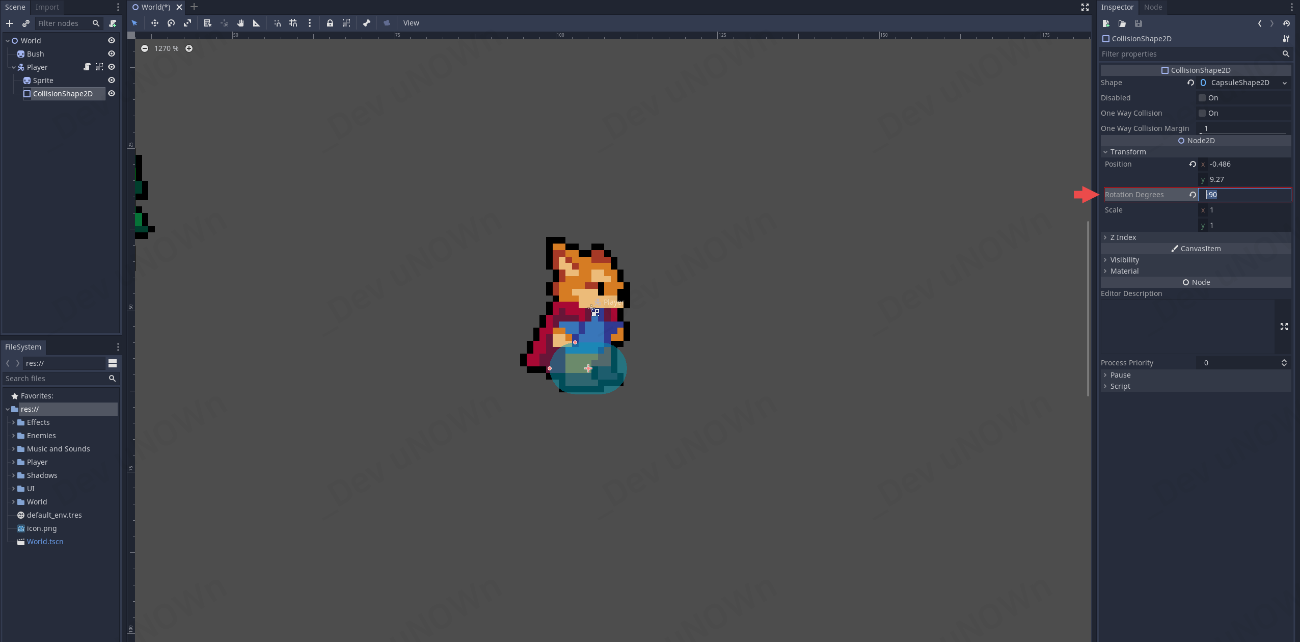 우측 인스펙터 뷰에서 Rotation Degrees를 -90으로 값을 변경합니다.