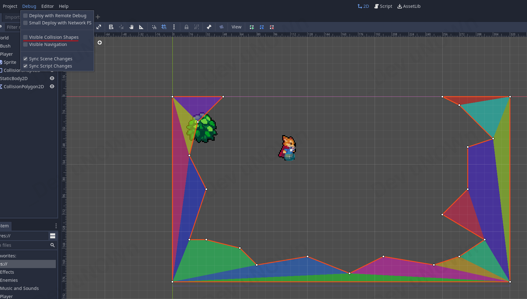 Debug - Visable Collision Shapes를 체크✔합니다.