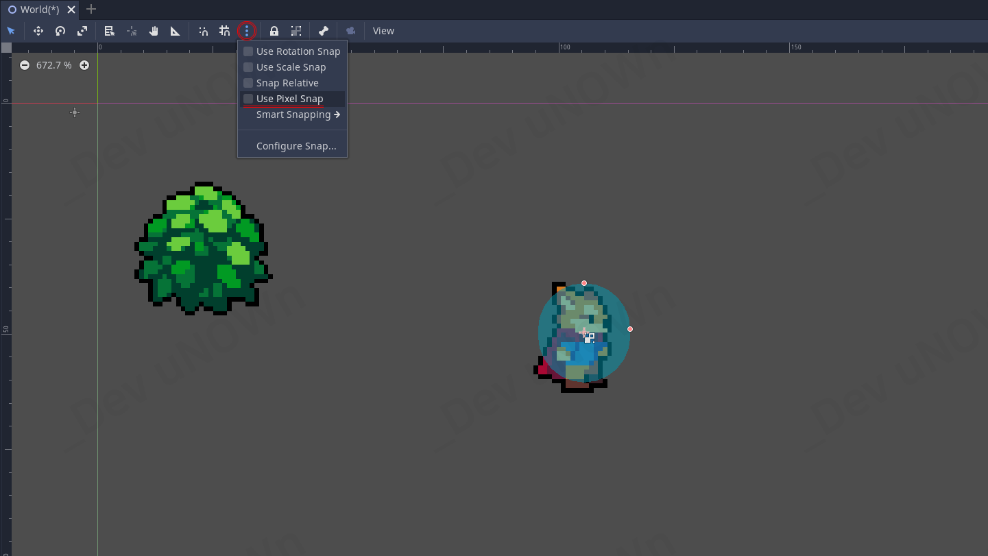 캐릭터는 픽셀 단위이기 때문에, 이 옵션을 켜면 픽셀에 기준을 맞춰 스냅(Snap)이 됩니다.