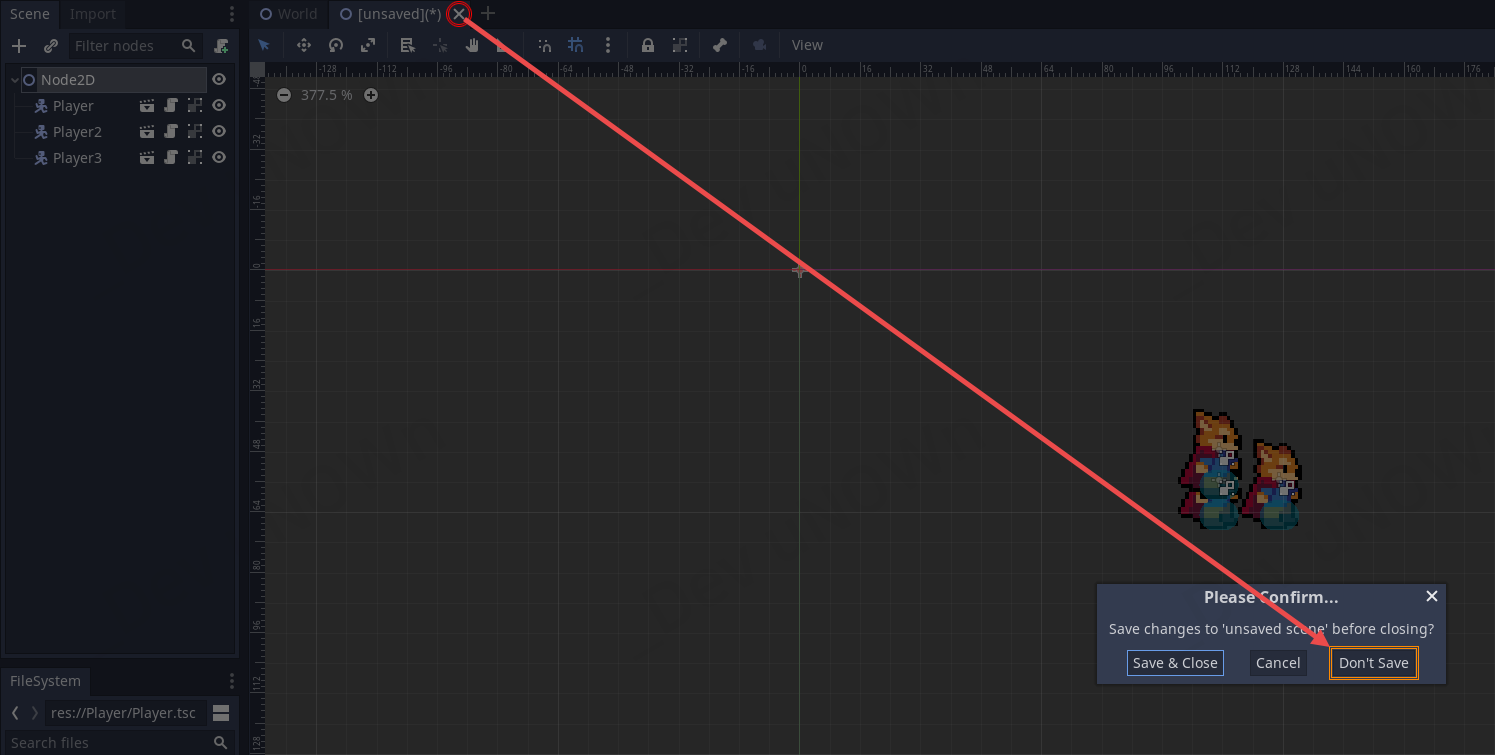 이런 식으로 파일 시스템(File System)에 있는 Player - Player.tscn를
