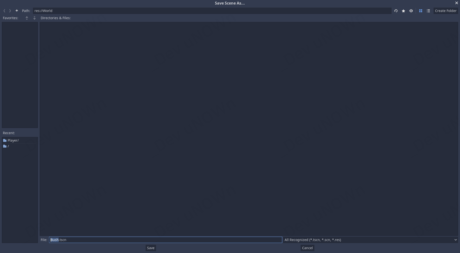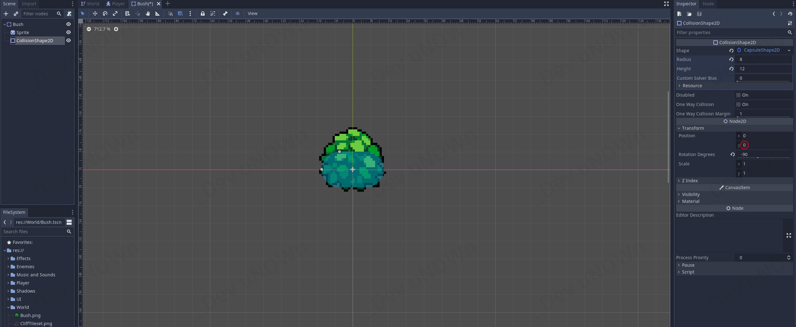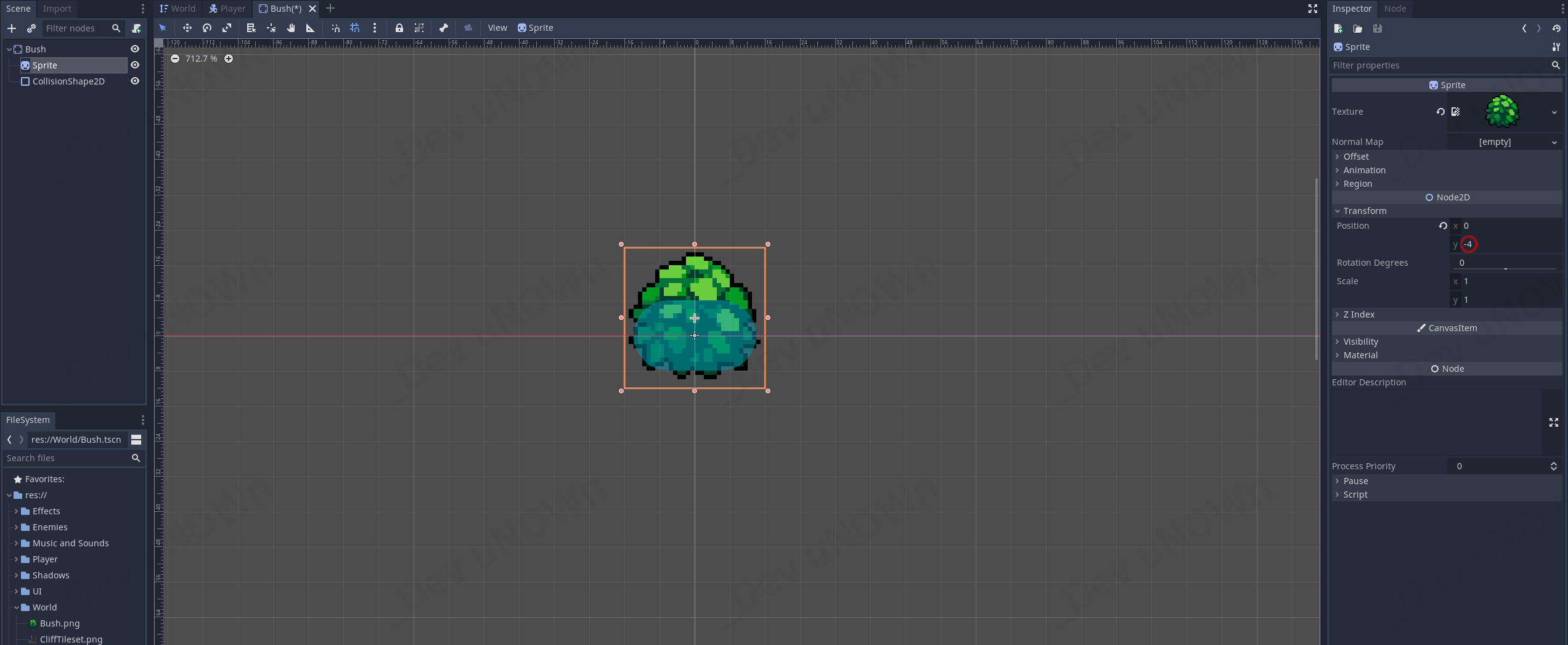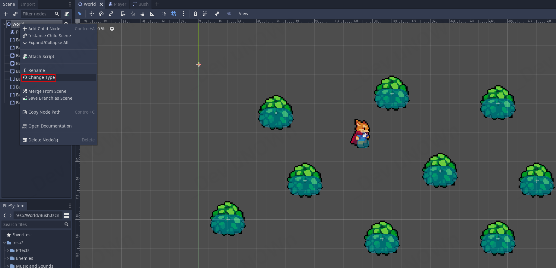 Bush.tscn를 수정합니다. 해당 창이 꺼졌다면 Bush.tscn를 파일 시스템에서