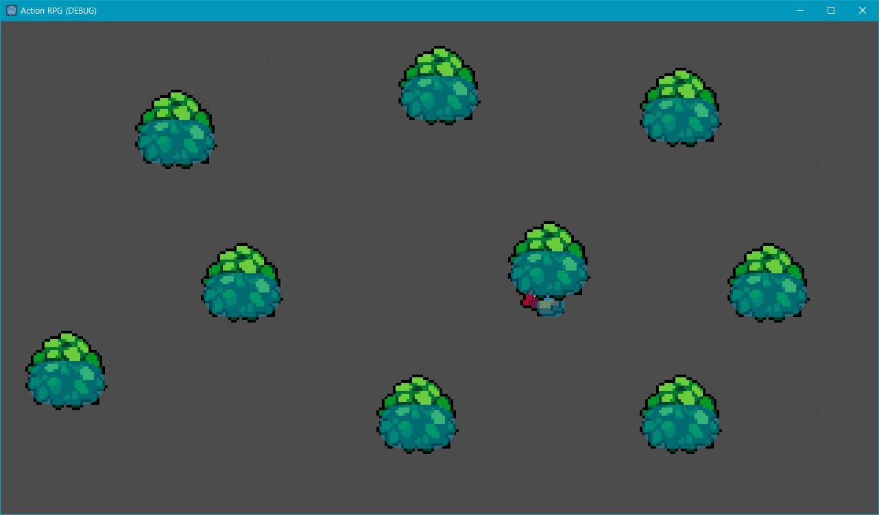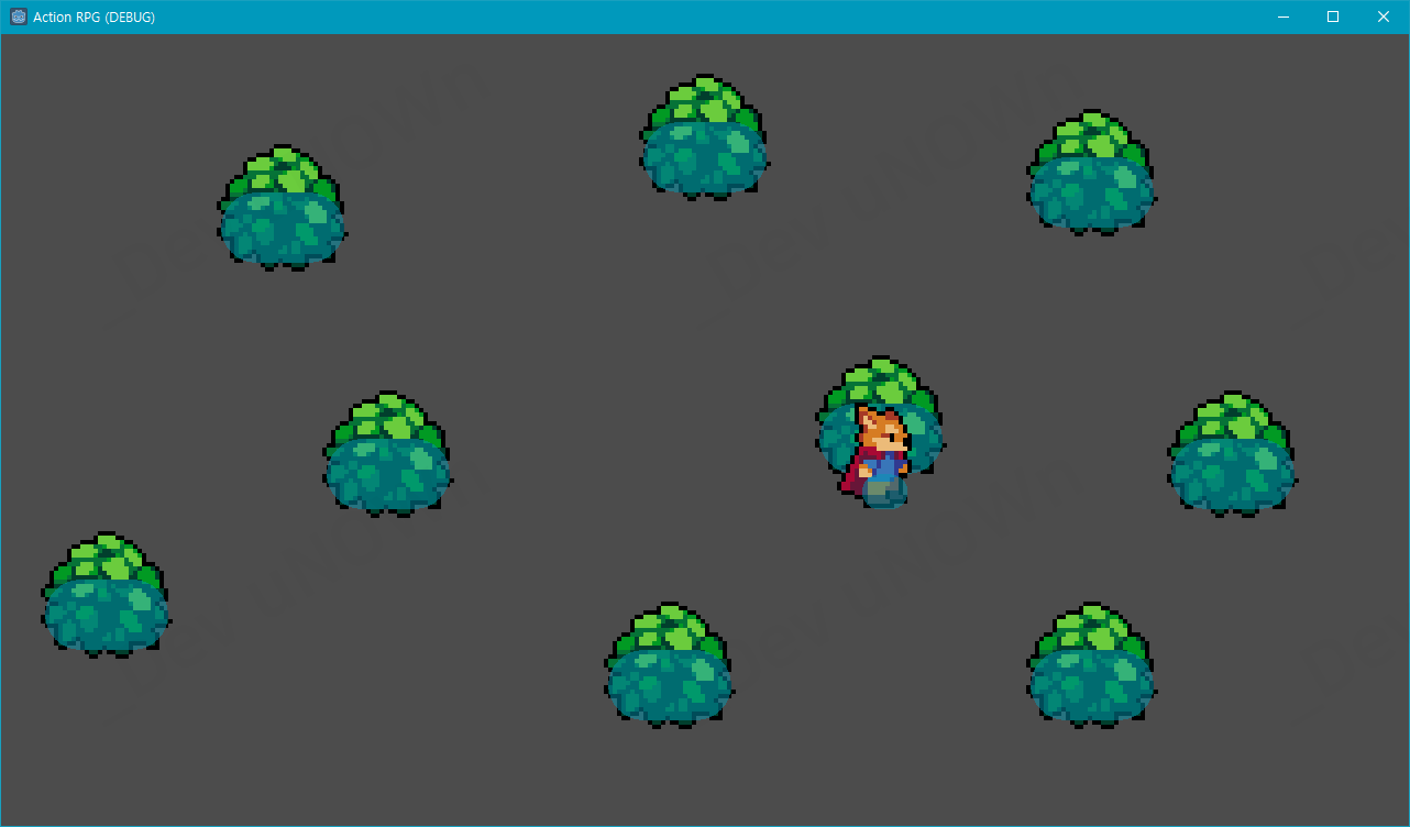 우리의 게임에서는 캐릭터가 부쉬에 가려지면 안 됩니다. 부쉬에 숨을 생각도 없으니까요.