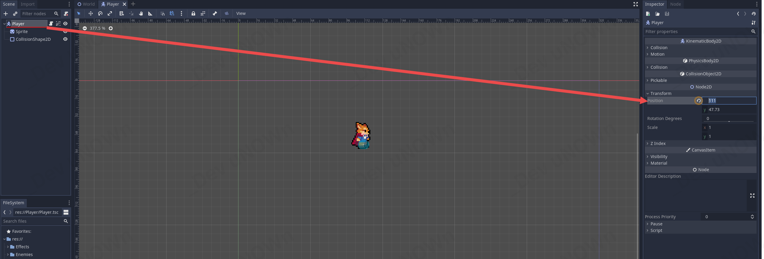 캐릭터의 스프라이트의 Position 을 다음과 같이 수정합니다.