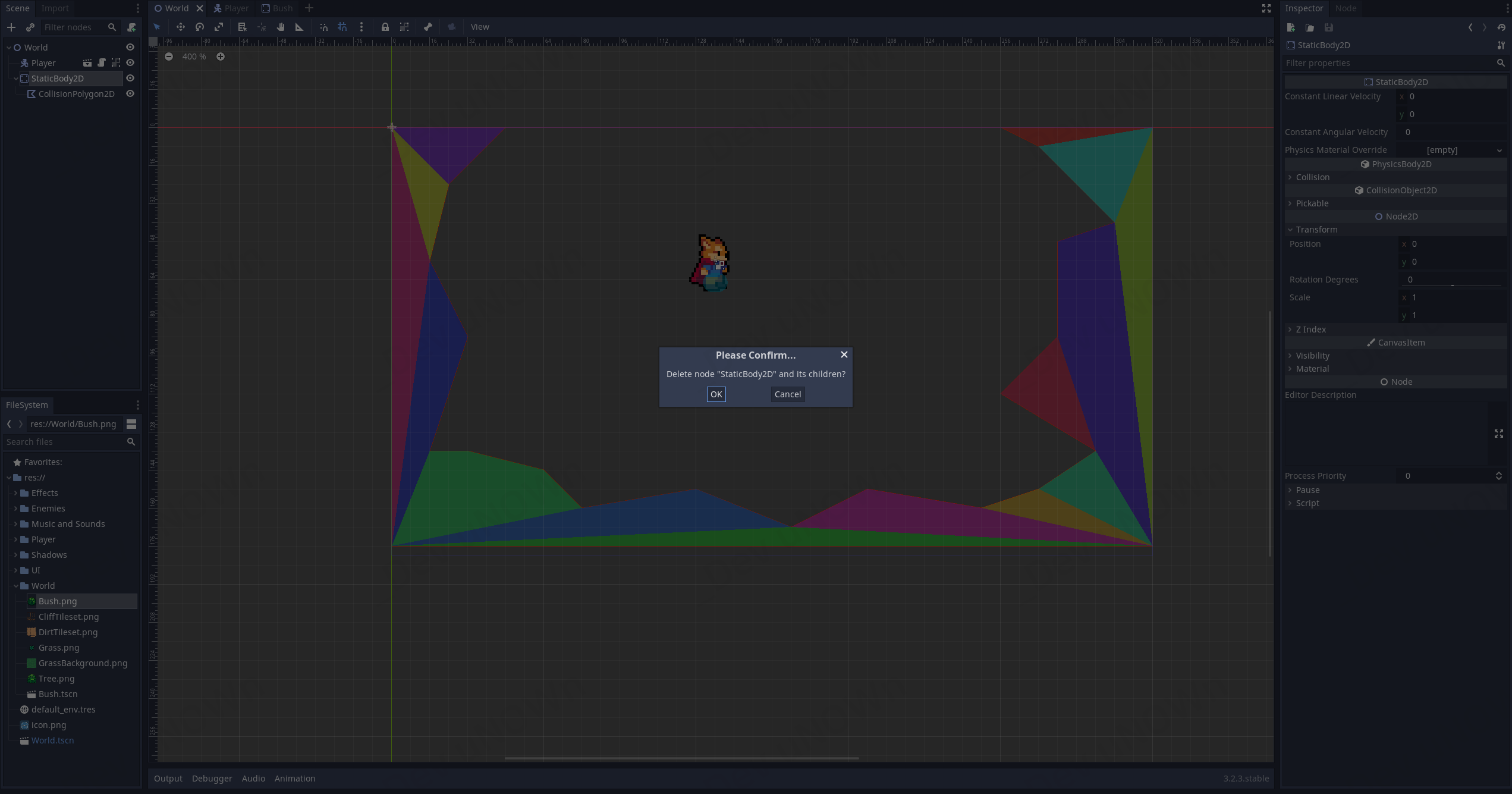 생성된 StaticBody2D의 이름을 Bush로 정합니다. 다른 이름도 괜찮습니다.