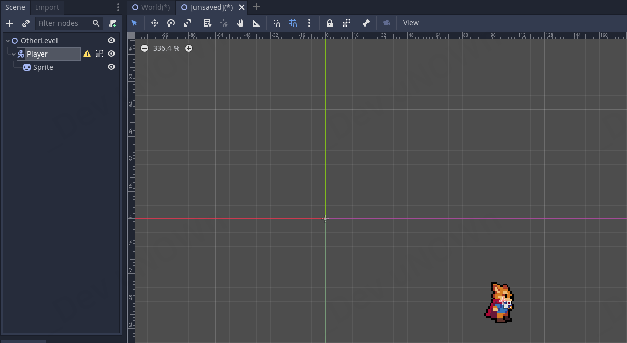 원래 World 노드가 있는 씬으로 돌아오니까 캐릭터가 원점으로 돌아갔습니다.