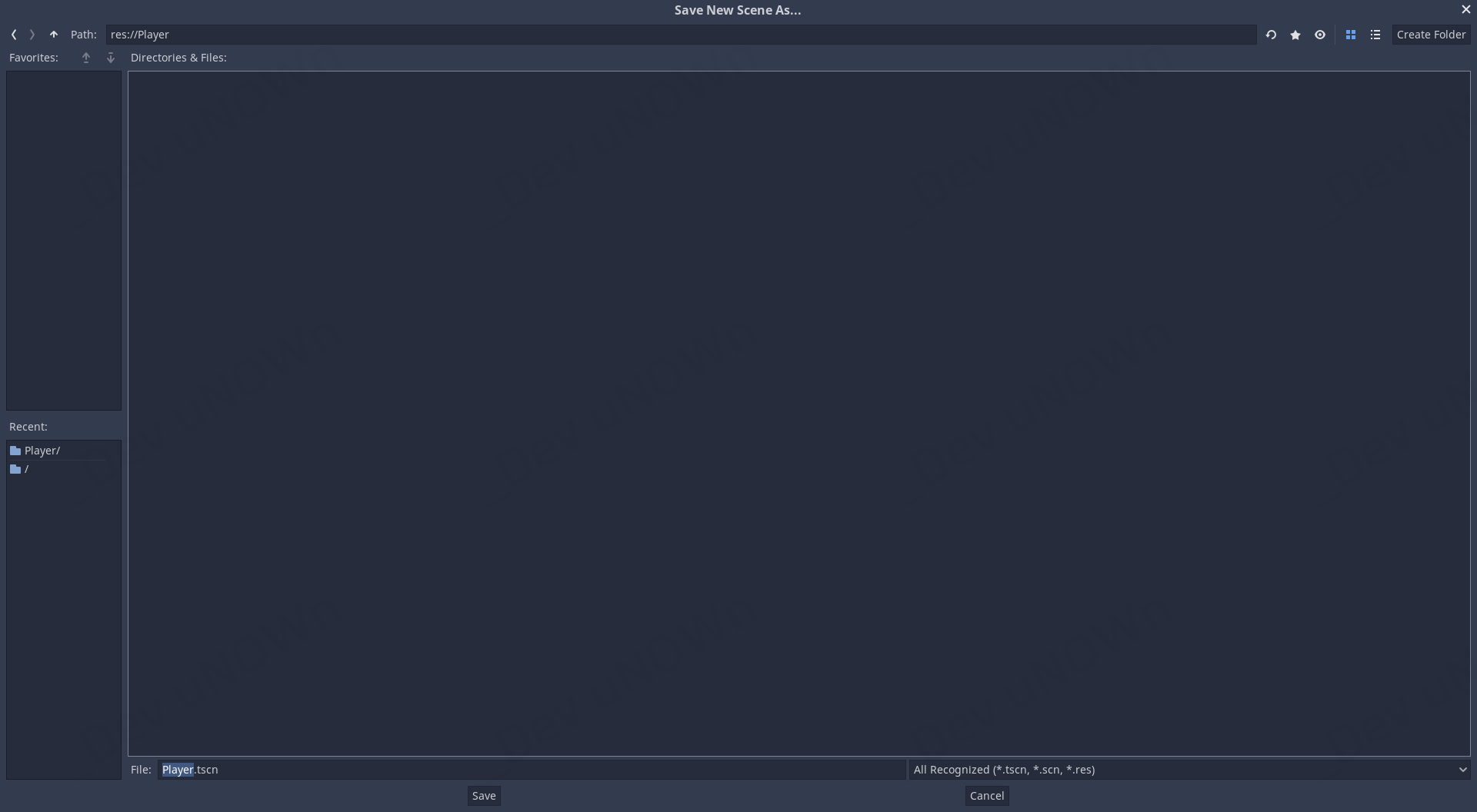 특정 경로에 저장(Ctrl+S)을 하여야 합니다. 우선 Player 폴더에 저장하도록 하겠습니다.