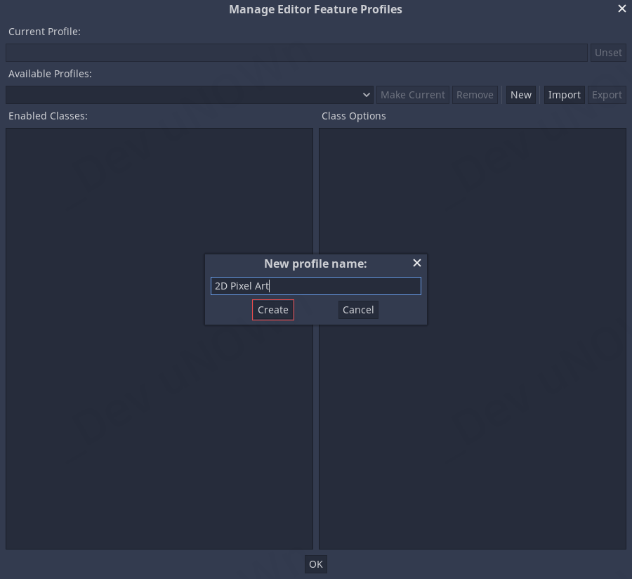 저는 프로파일 이름을 '2D Pixel Art'라고 하도록 하겠습니다.