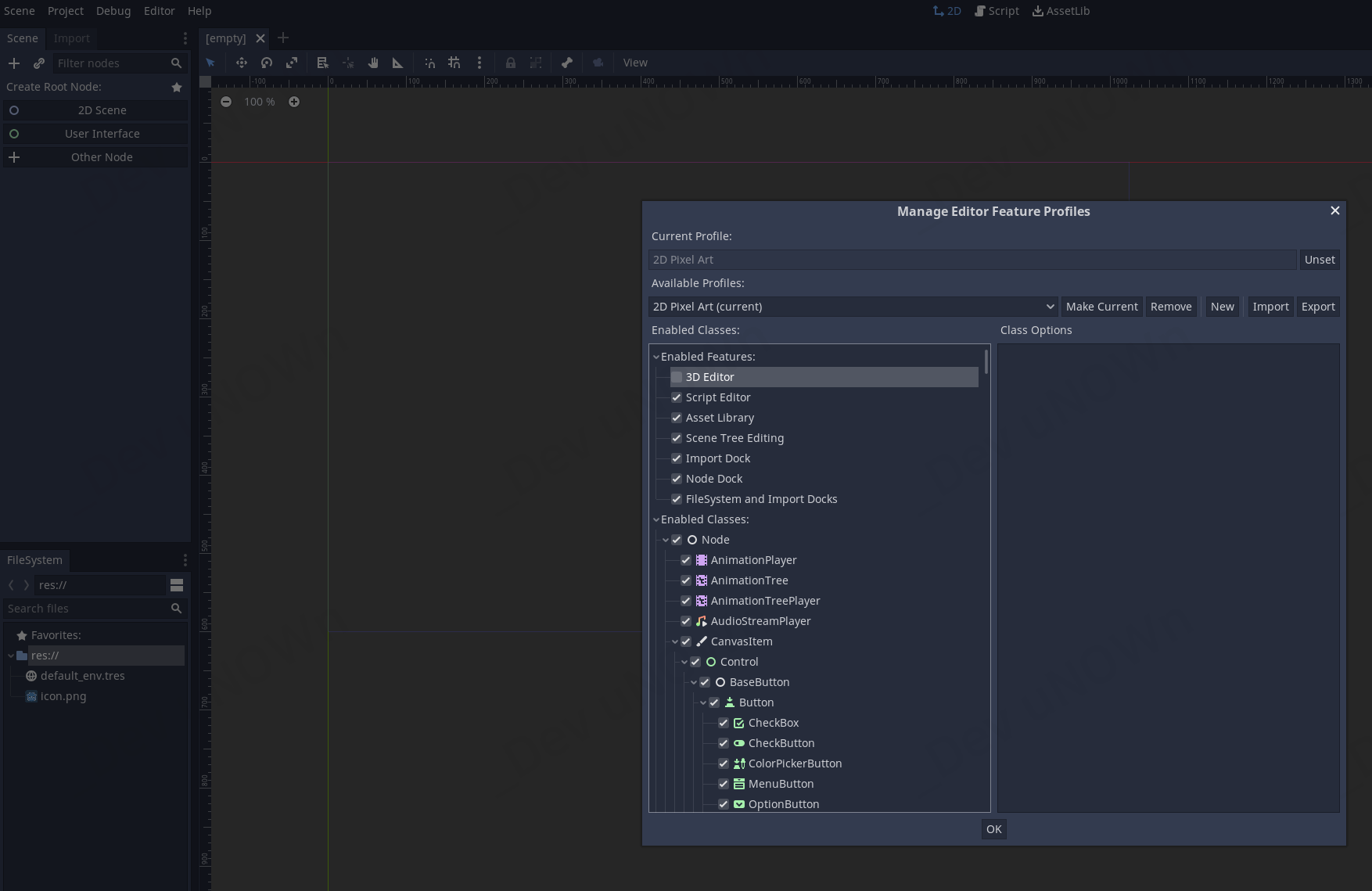 [Godot Engine] 고도 엔진 레이아웃 필터설정