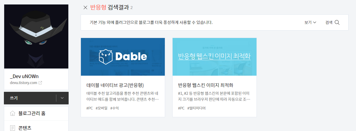 티스토리에서는 '반응형 웹스킨 최적화 플러그인'을 출시했는데