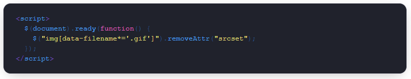 $("img[data-filename*='.gif']").removeAttr("srcset");