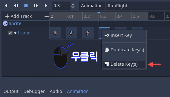 혹시 키 프레임을 넣다가 중간에 잘못된 키 프레임이 있으면 수정할 수 있습니다.