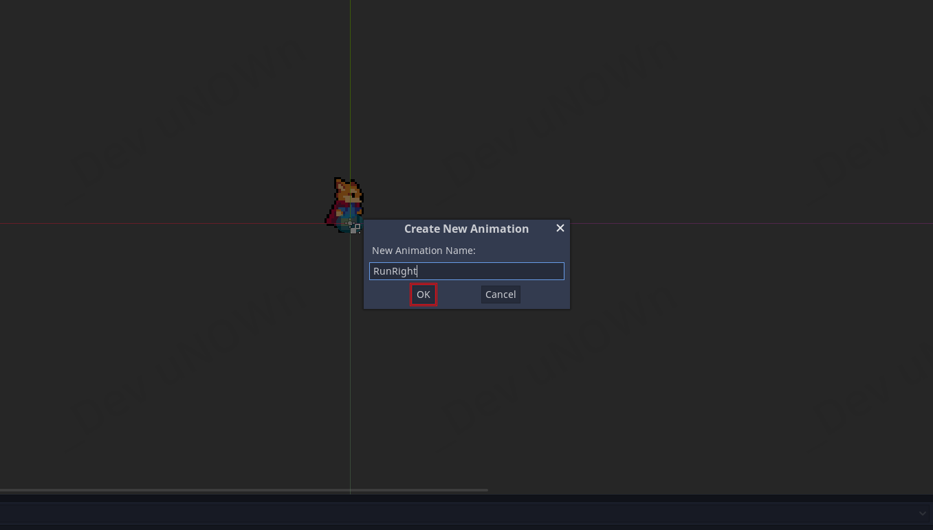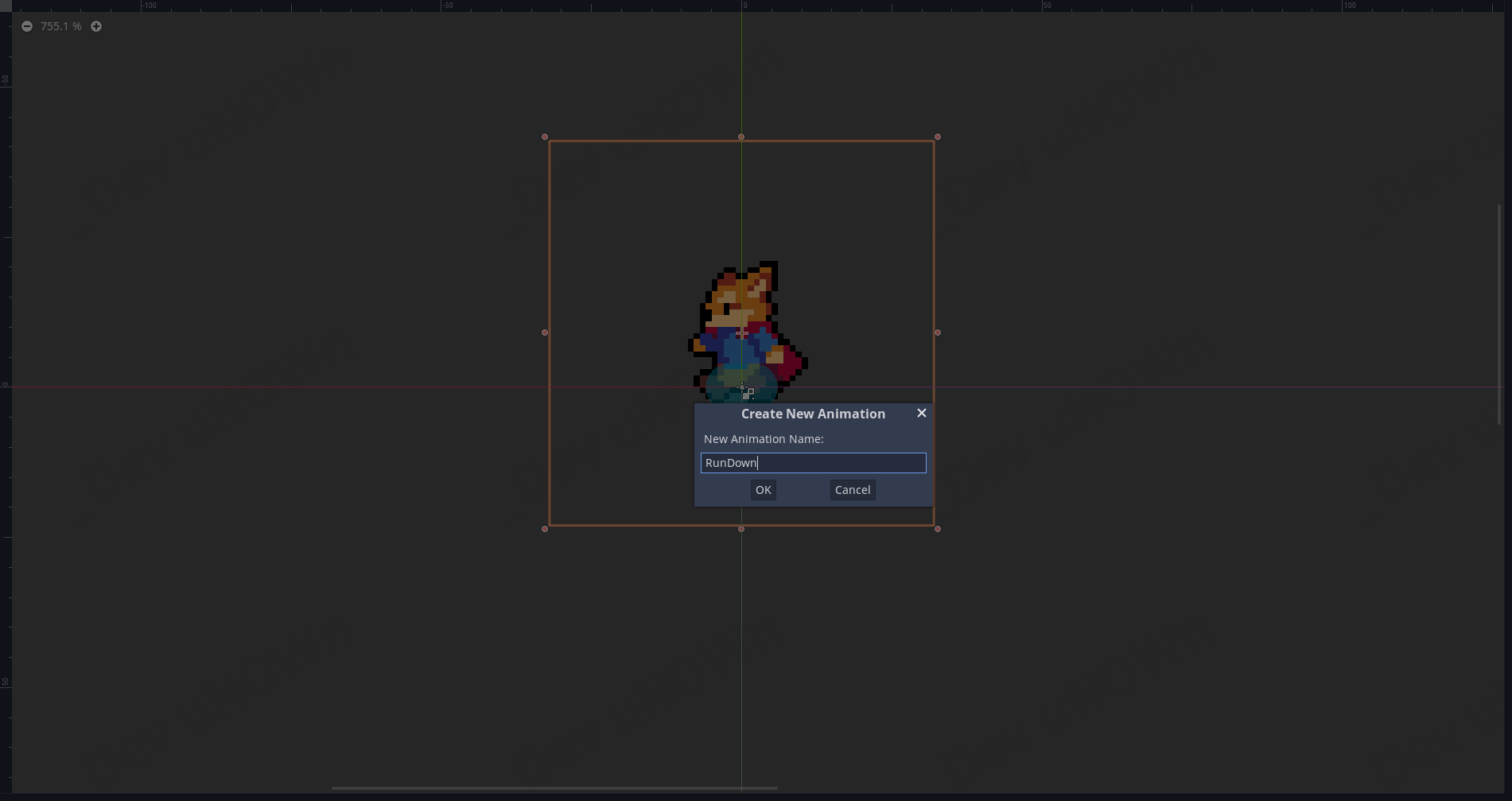 마지막으로 애니메이션을 생성합니다. 이름은 'IdleDown'으로 정하고 프레임은 '18'를 넣습니다.