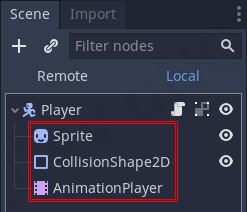 Player 노드 옆에 있는 해당 아이콘을 클릭해주세요.