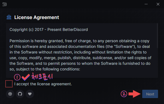 Install BetterDiscord를 선택해 Next를 눌러 진행합니다.