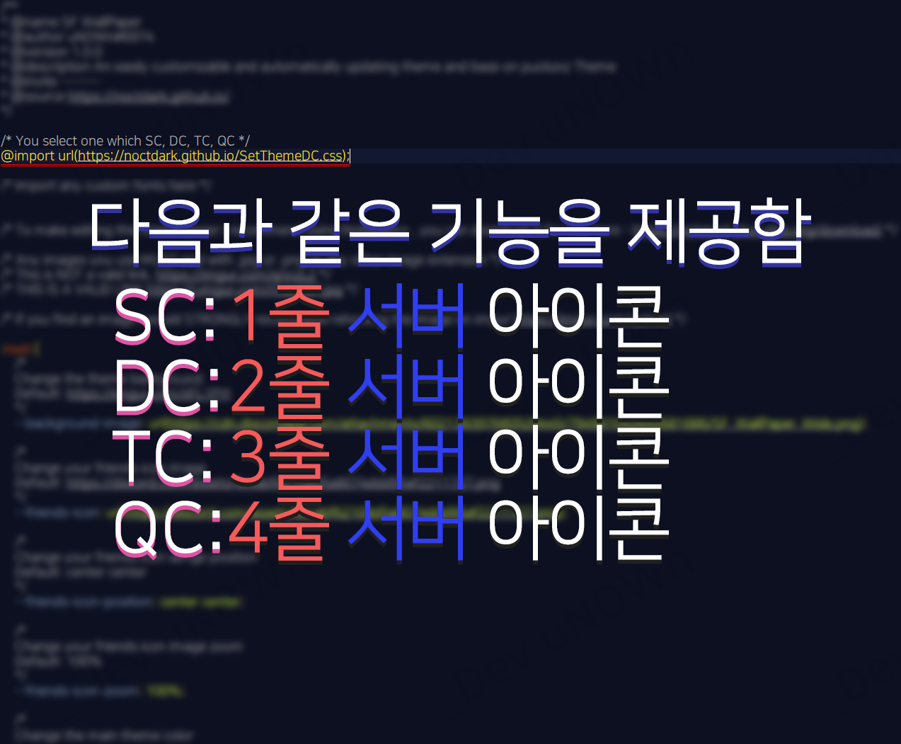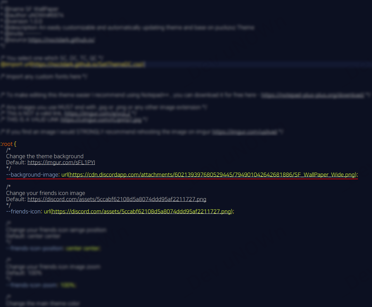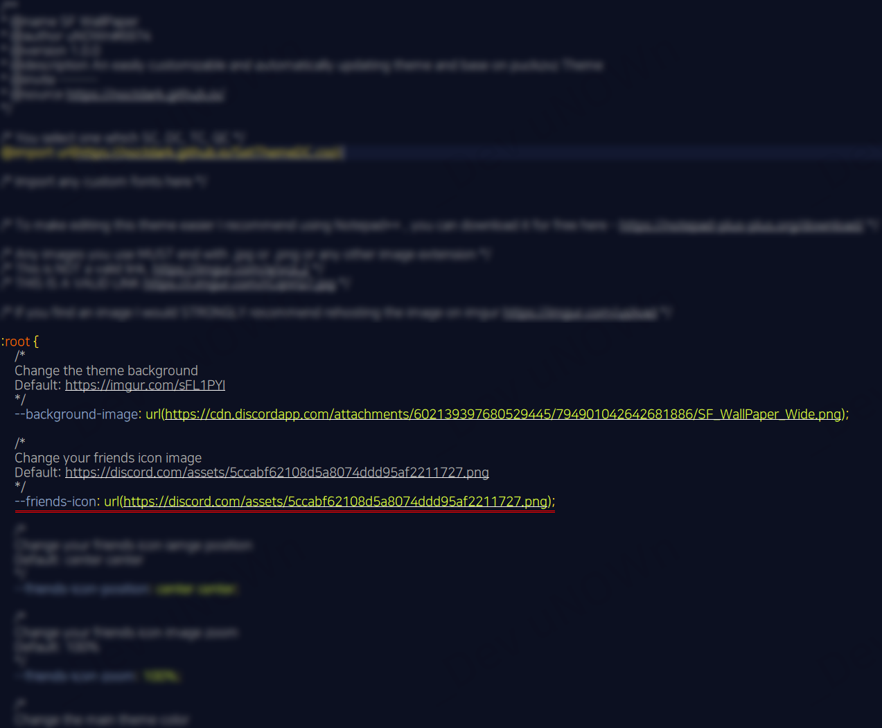 이미지 말고도 아래에 옵션 값들 있으니 주석을 읽어보고 나만의 디스코드 스킨을 만들어 보시길 바랍니다.