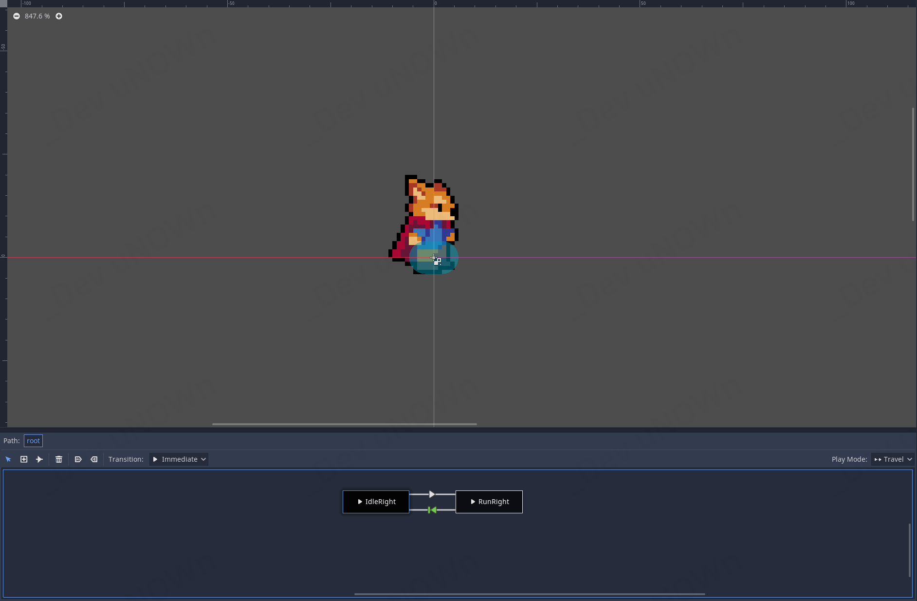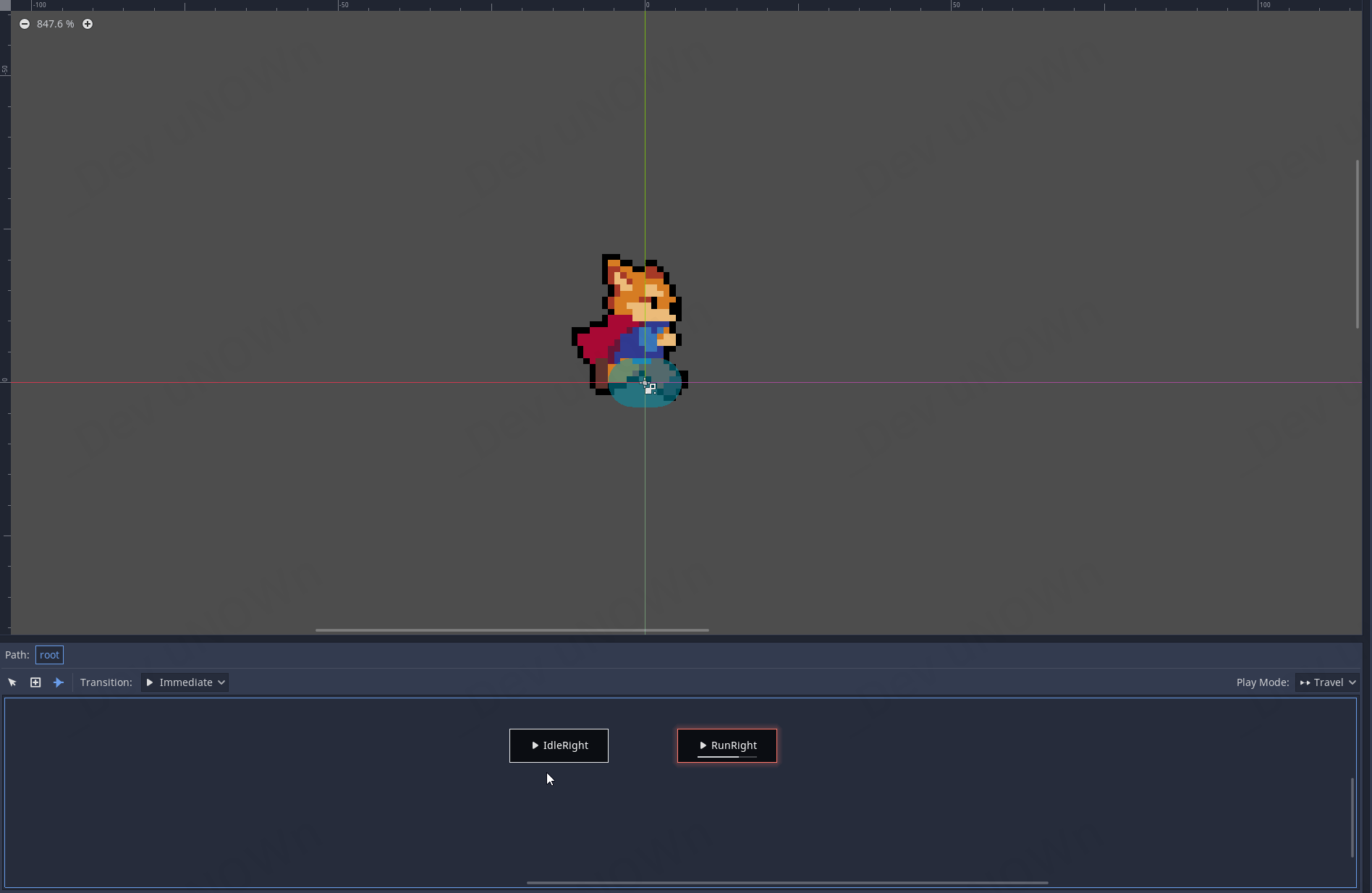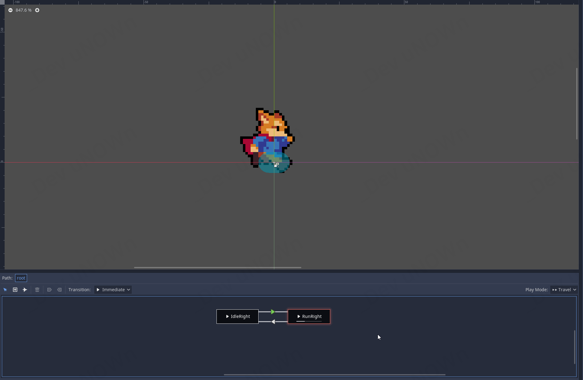 이건 당연하게도 둘 다 즉시 재생되고 있기 때문에 IdleRight⇆RunRight를 빠르게 왔다 갔다 하여 그렇게 보이는 것입니다.