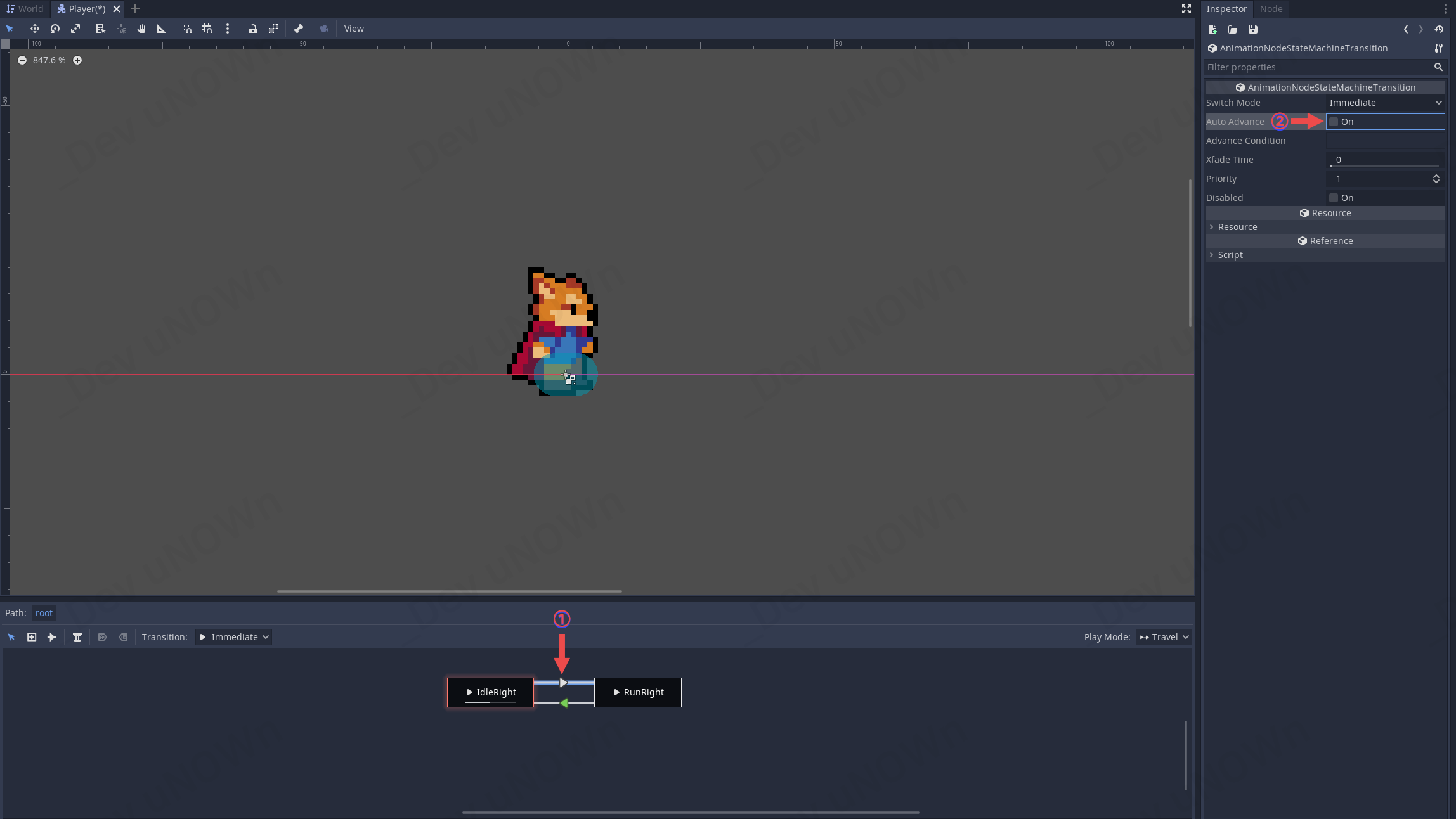 else: 구문 아래에 있는 animationPlayer.play("IdleRight")는 지우도록 합니다.