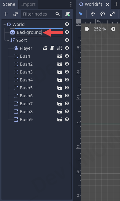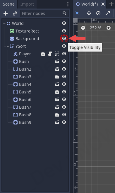Ysort를 제외한 바로 위에 있는 노드를 선택합시다. 이미지에서는 Bush9를 선택합니다.