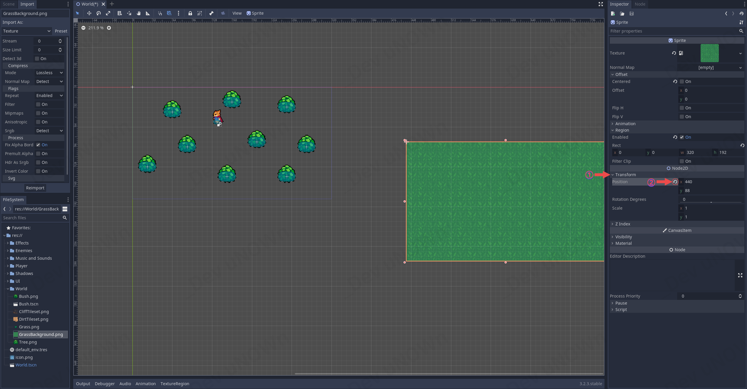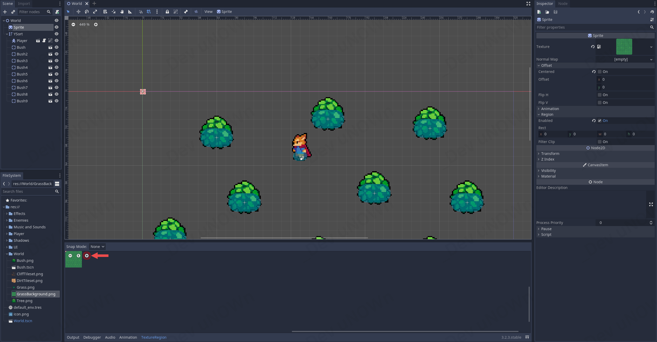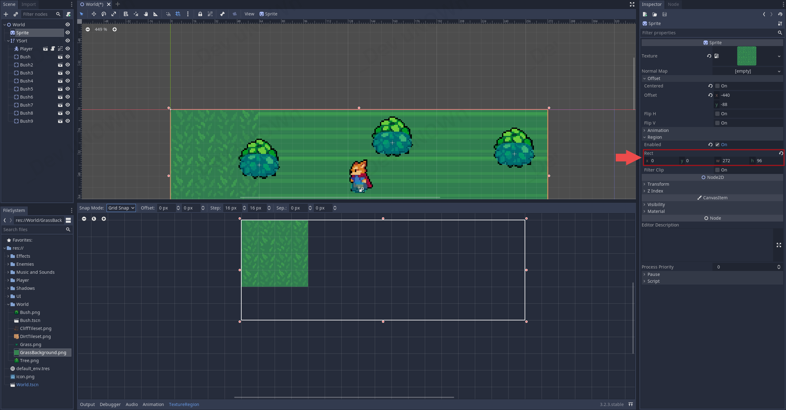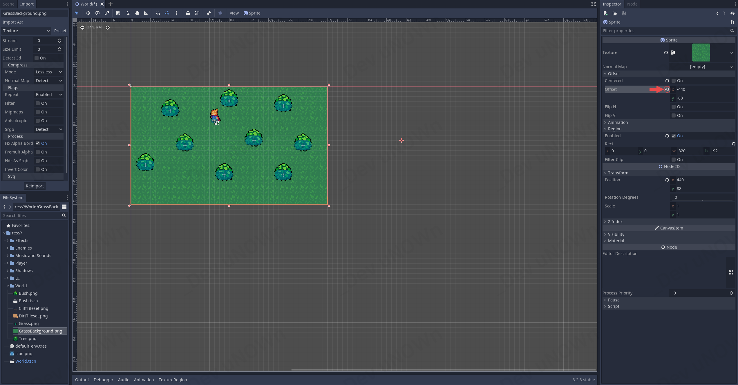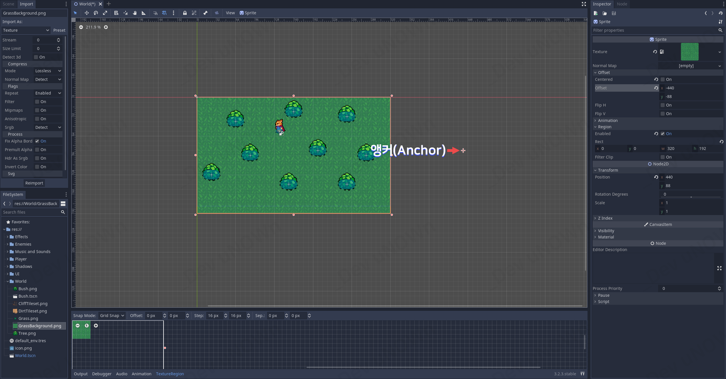 텍스처 리전을 늘리면서 제가 설정을 잘못 건드려서 Offset이 늘어나 있습니다.