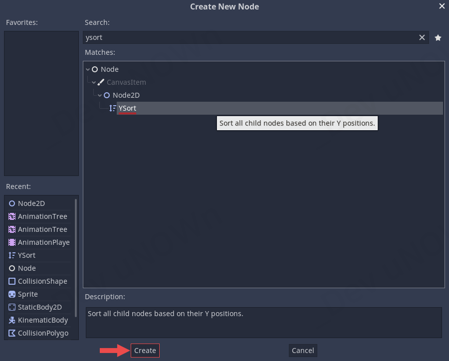 'ysort'라고 검색하고 Ysort노드를 새로 생성합니다.