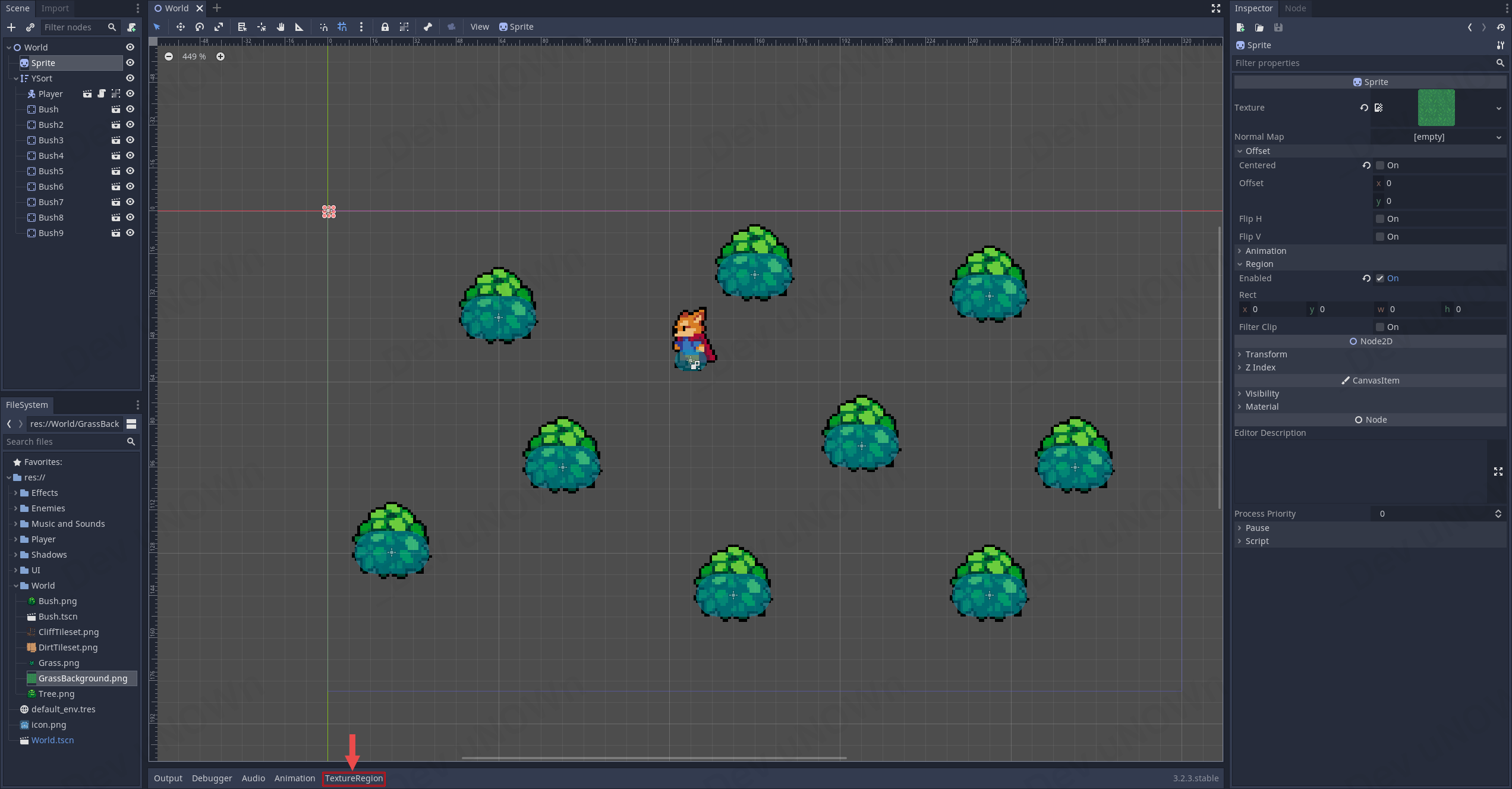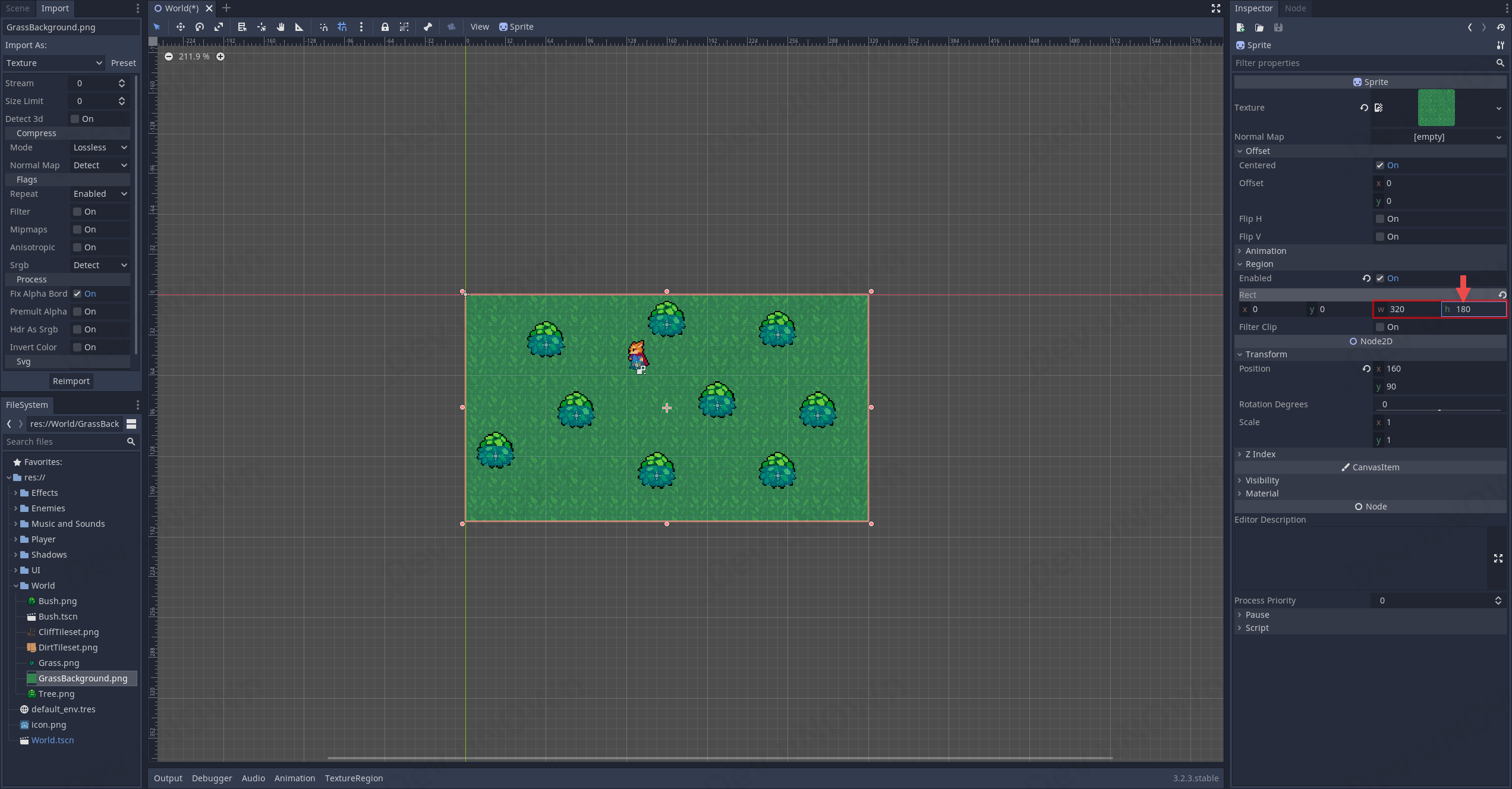 그리고 여러분이 텍스처 리전에서 늘리고 줄이는 값들은 여기에서 확인할 수 있습니다.