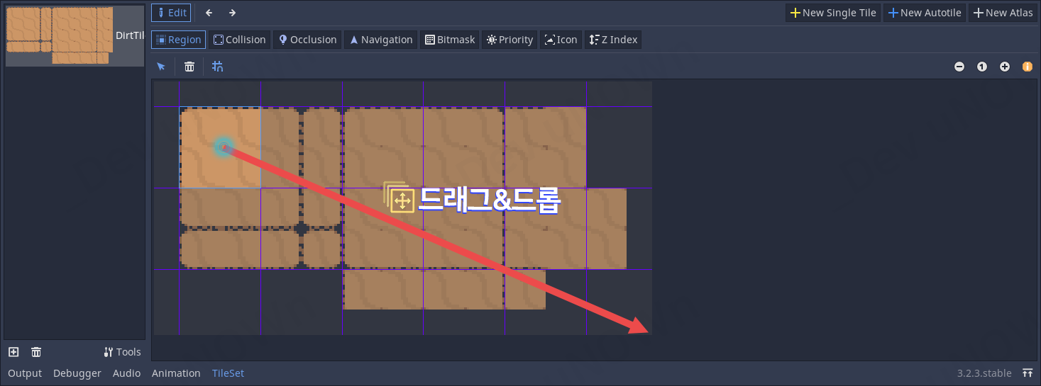 이제 왼쪽과 아래, 왼쪽 아래 타일에 대해서 설정해봅시다.