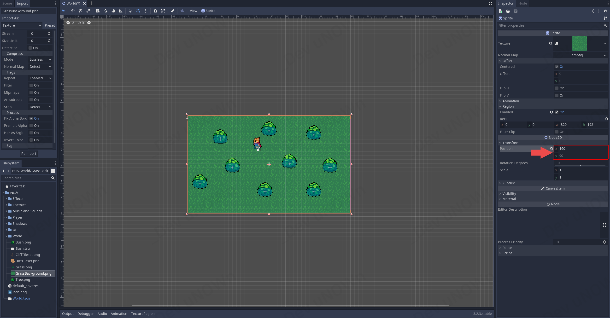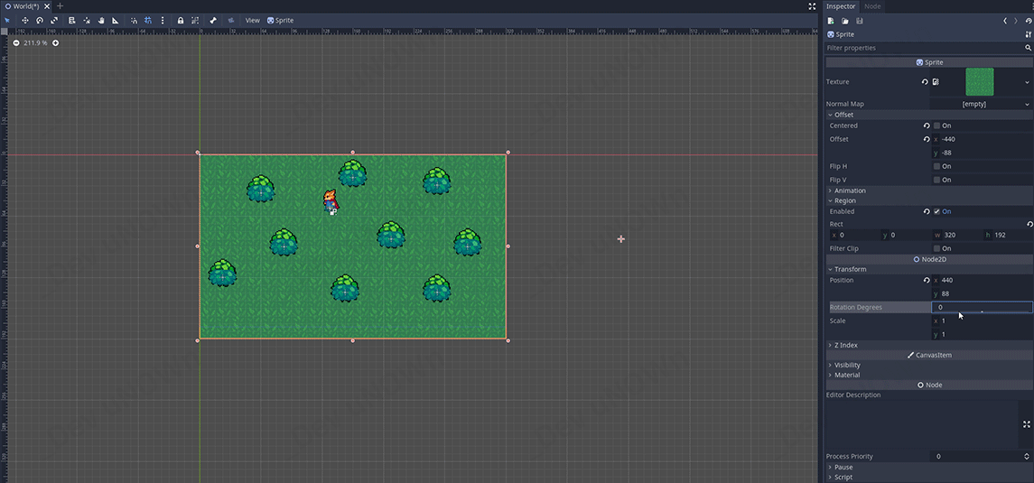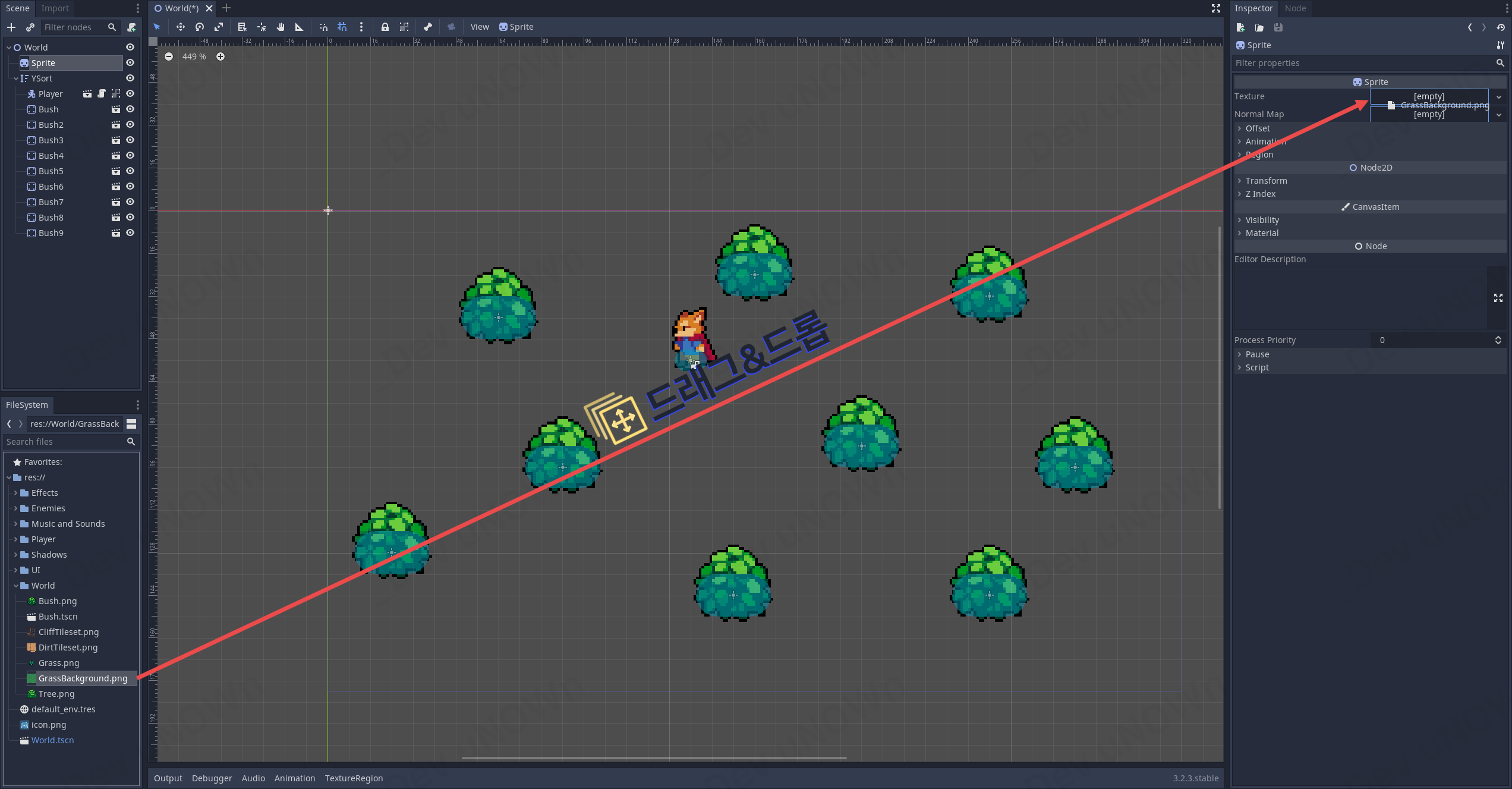 생성된 Sprite 노드를 World 노드 바로 밑으로 옮깁니다.