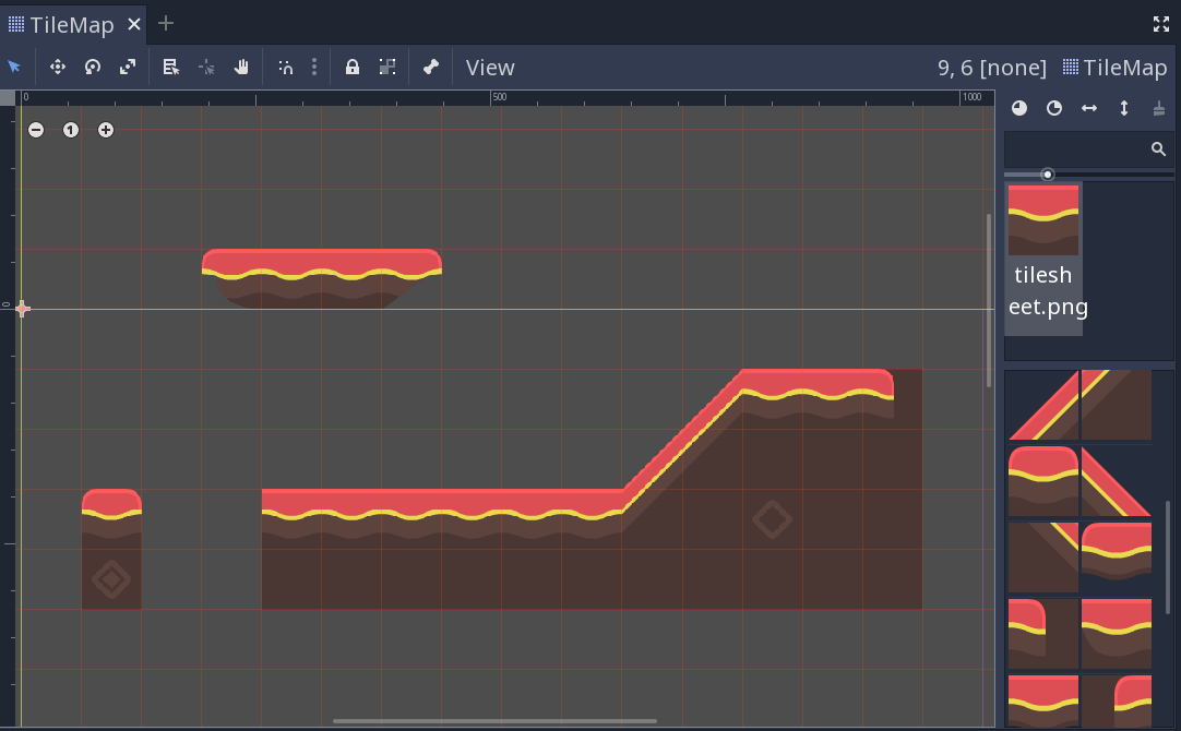 원하는 타일을 클릭하시고 다시 TileMap을 누르게 되면 아이콘이 변경되어 보입니다.