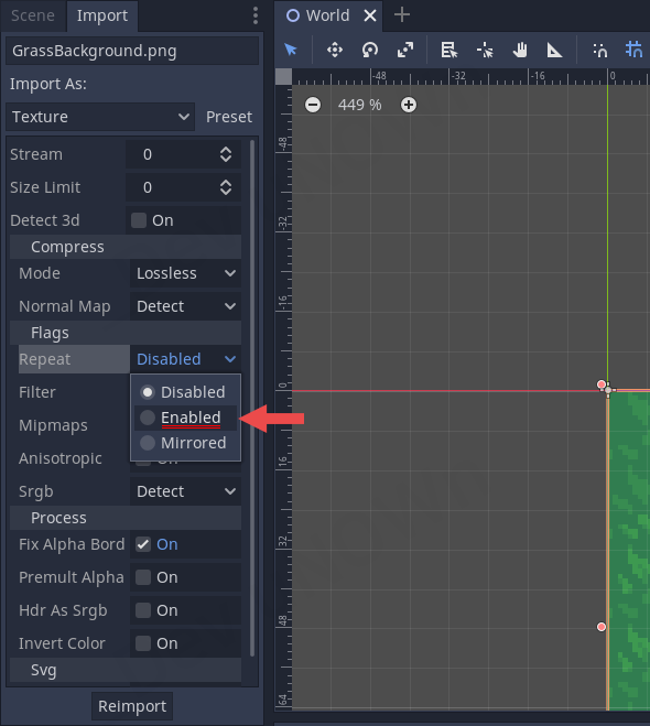 GrassBackground.png를 드래그&드롭해서 텍스처(Texture) 항목에 넣습니다.