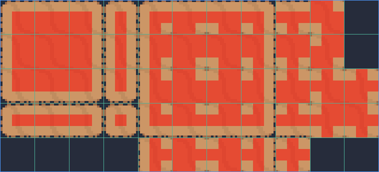 나머지 타일도 마찬가지입니다. 갈색 점 픽셀이 잘 안 보인다면 더 확대하셔서 작업하시면 됩니다.
