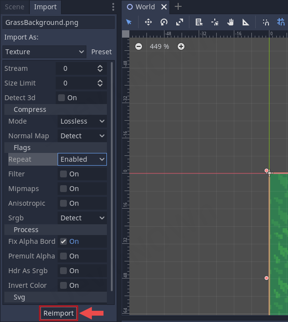 우선, 아래에 GrassBackground.png가 선택되어 있으시다면, 위에 있는 Import 버튼을 눌러서 전환해주세요.