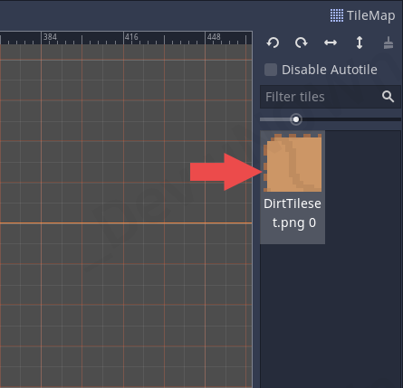 원하는 타일을 클릭하시고 다시 TileMap을 누르게 되면 아이콘이 변경되어 보입니다.