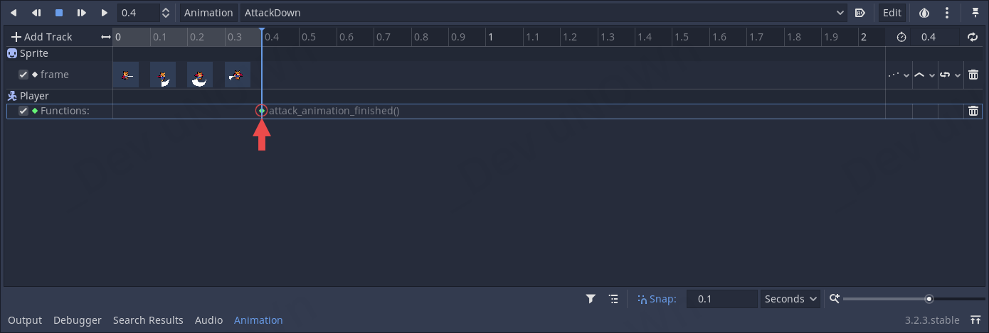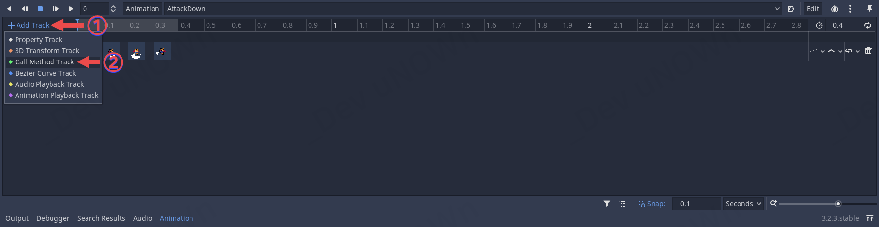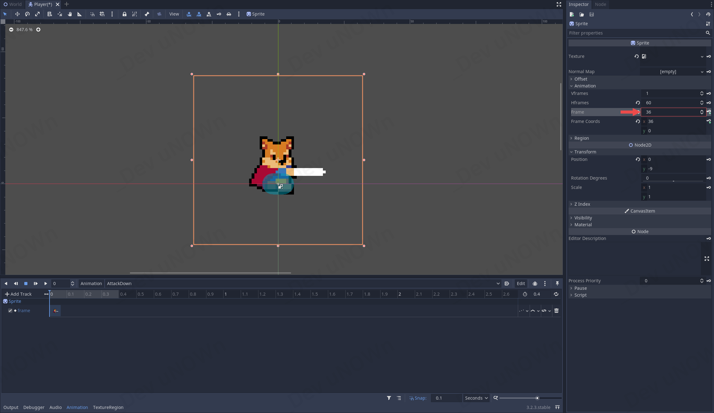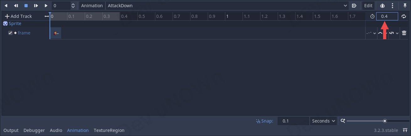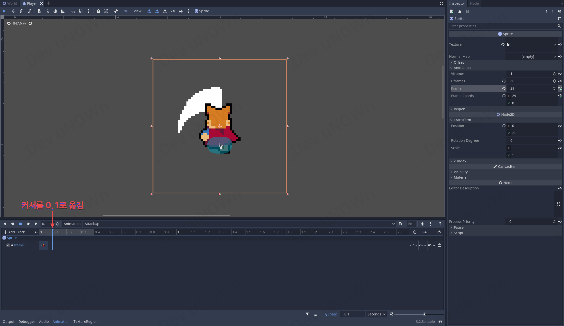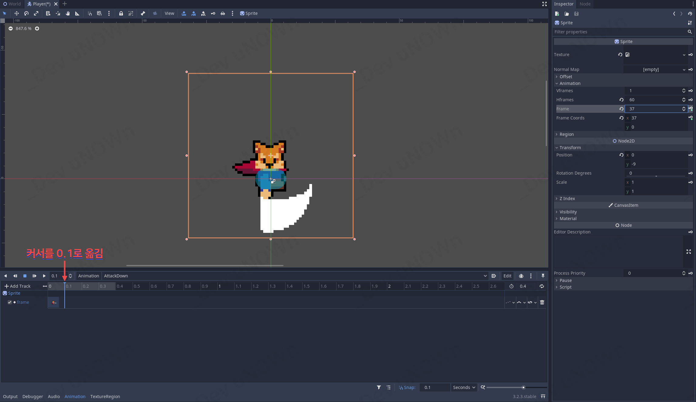 AnimationPlayer를 선택해서 AttackDown부터 수정하도록 하겠습니다.