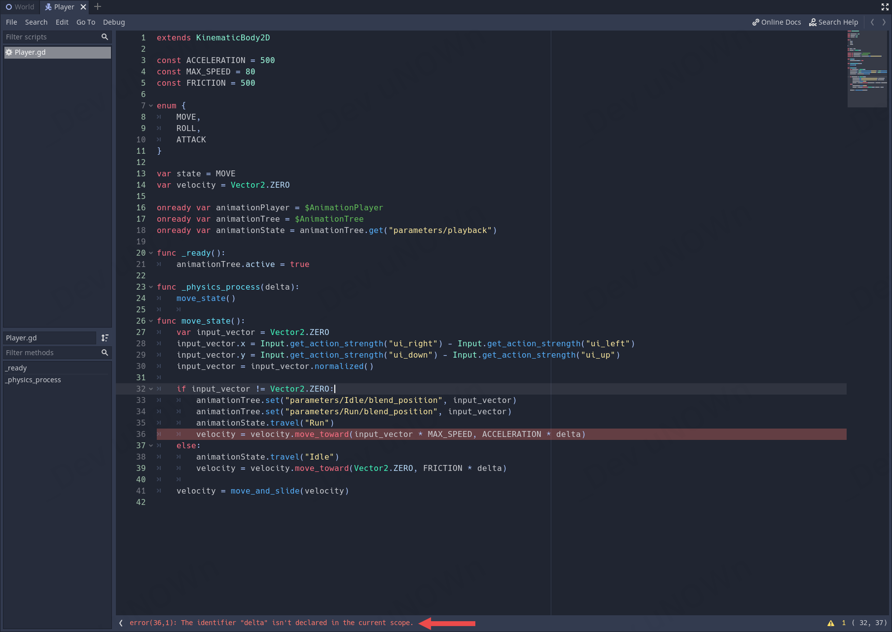 그러면 move_state()를 매 프레임에 실행하게 되는데 이때 공격하기 전에 이동했던