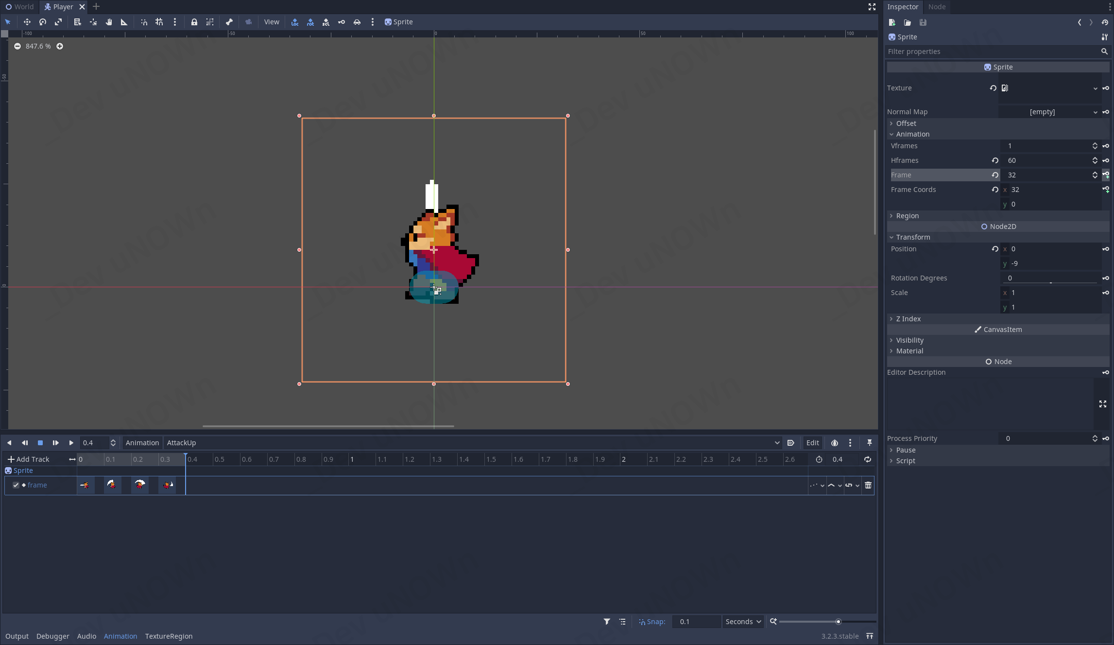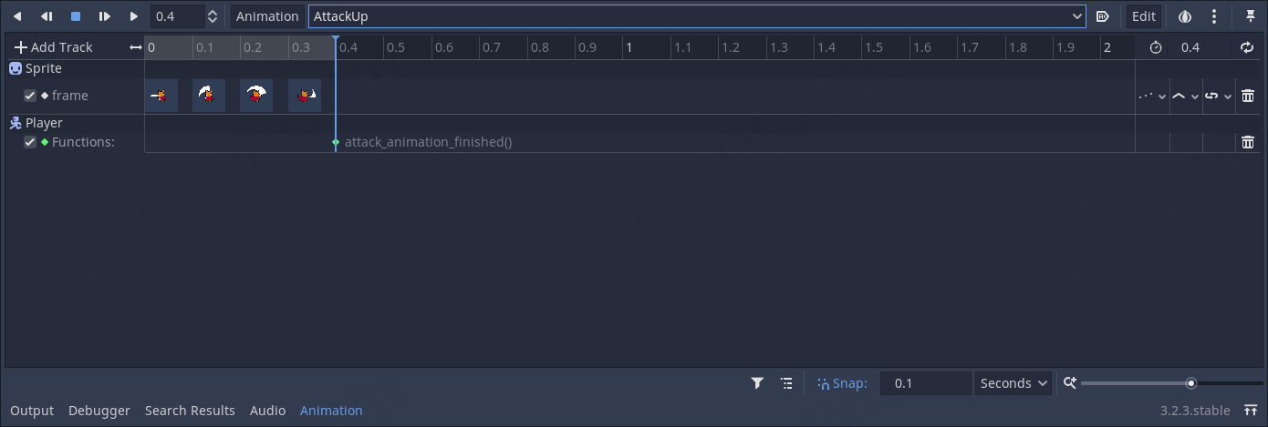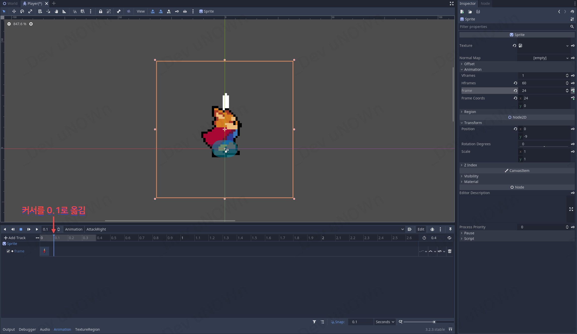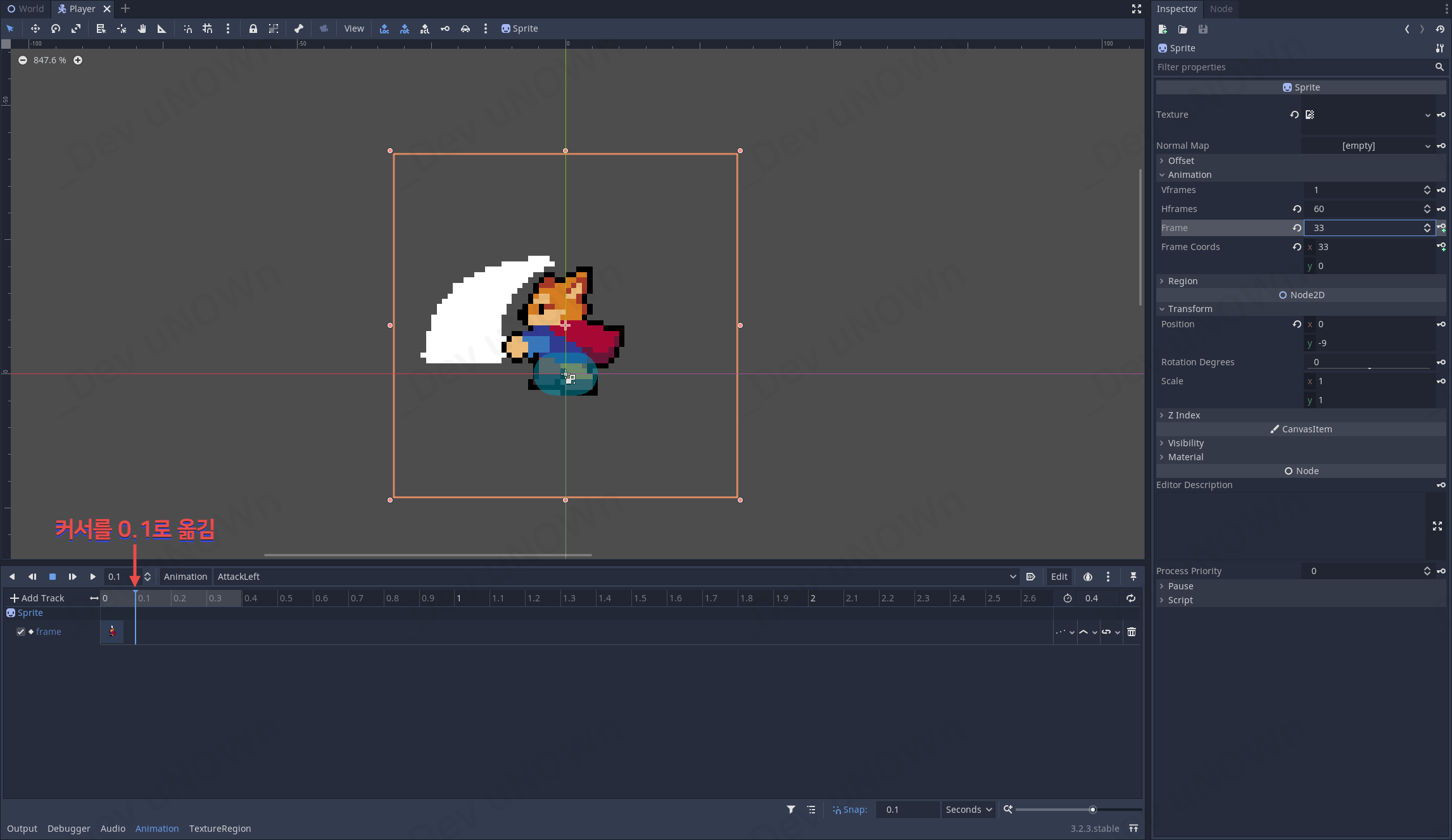 음, 재생은 잘됩니다만, 공격할 때 공격한 방향으로 앞으로 나아가는 느낌이 드네요. 이 부분을 수정하도록 합시다.