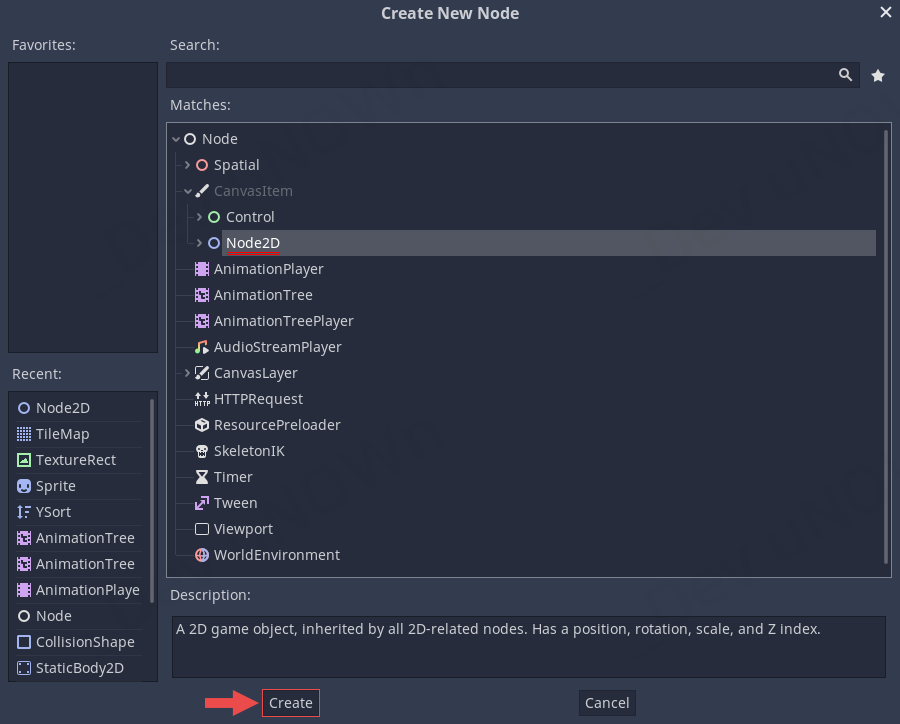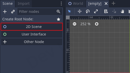 Node2D 선택 후 생성합니다.