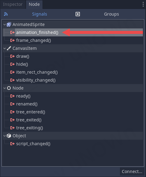 우리가 여기서 사용할 이벤트는 animation_finished()입니다. 더블 클릭합니다.