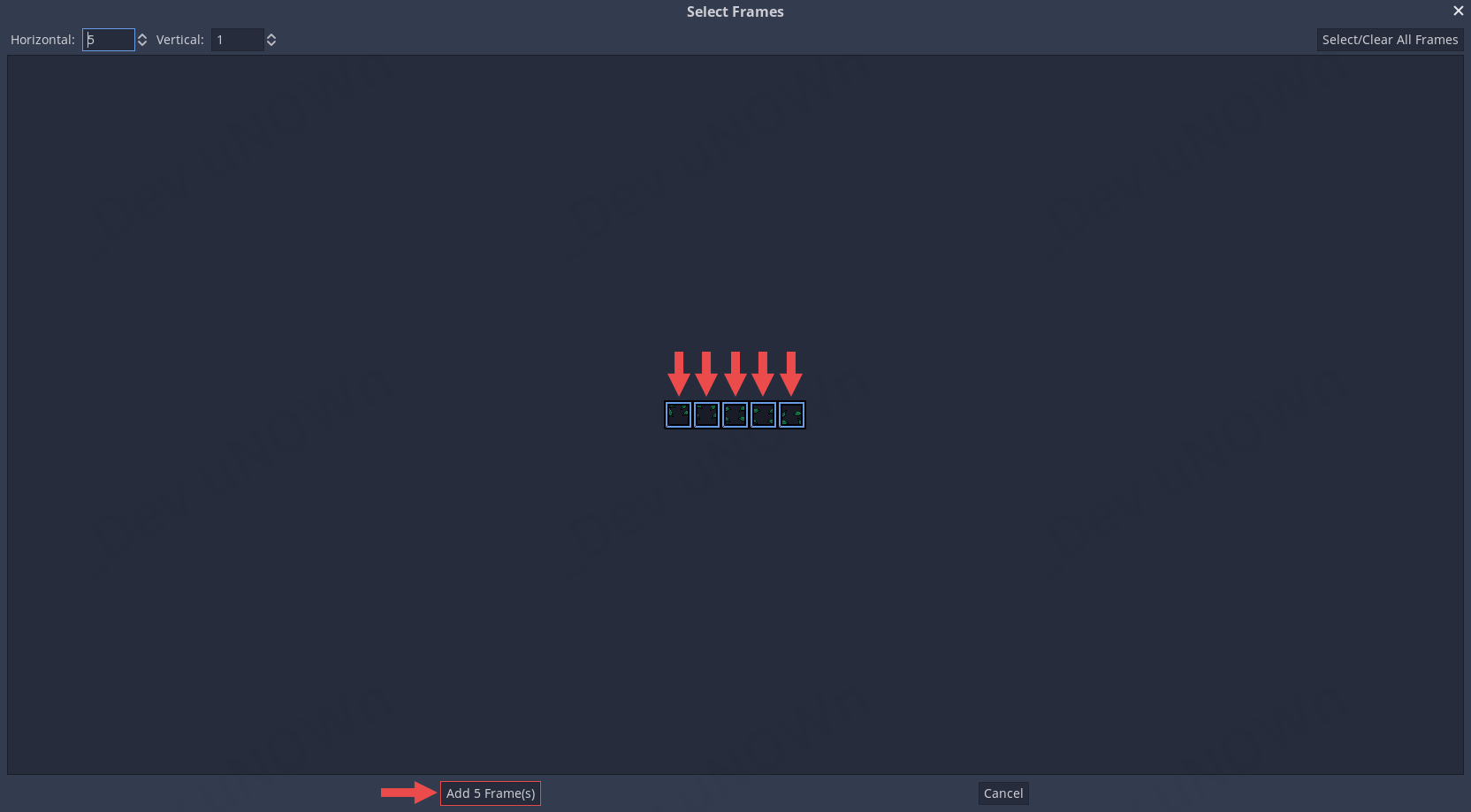 마지막에 Add 5 Frame(s) 버튼을 클릭합니다.