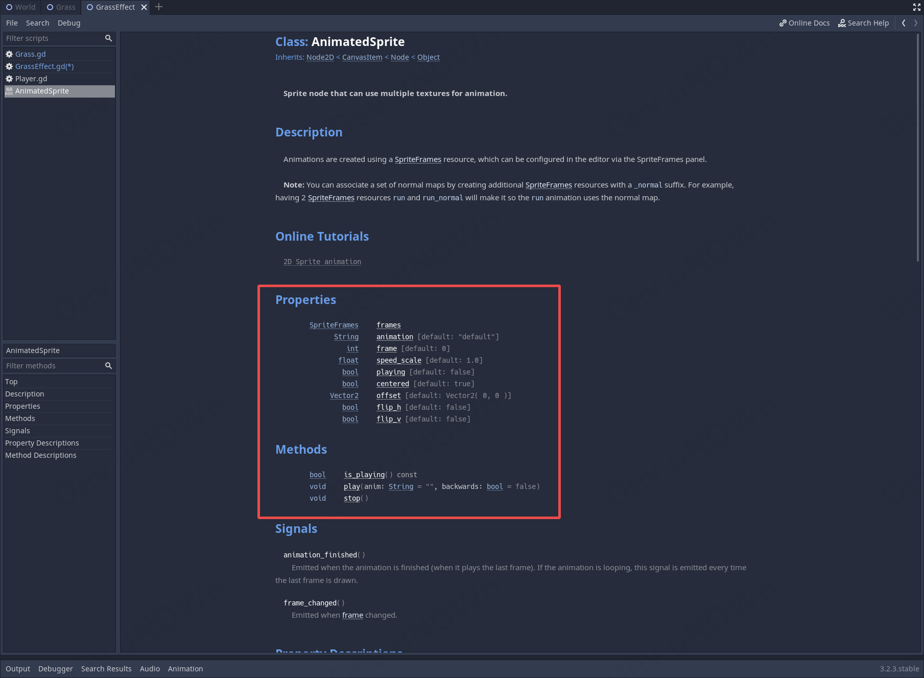 따라서 프레임을 되감아준 다음 재생하면 되는데요. 아까 우리가 봤던 Docs에서 이를 수정하는 속성이 있습니다.