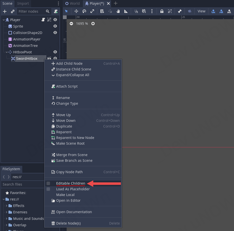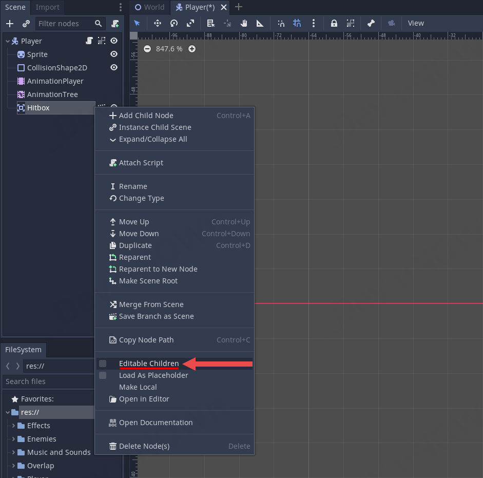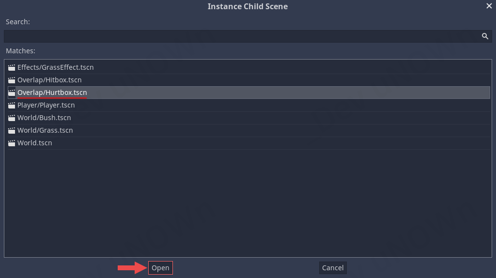 Overlap/Hurtbox.tscn를 선택하고 Open