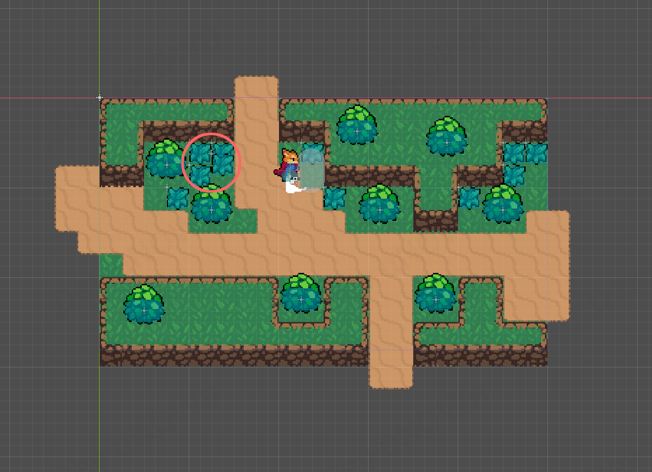 예를 들어 위의 이미지처럼 풀이 이런 식으로 겹치게 되면 풀이 베어지는 이펙트와 함께 사라집니다.