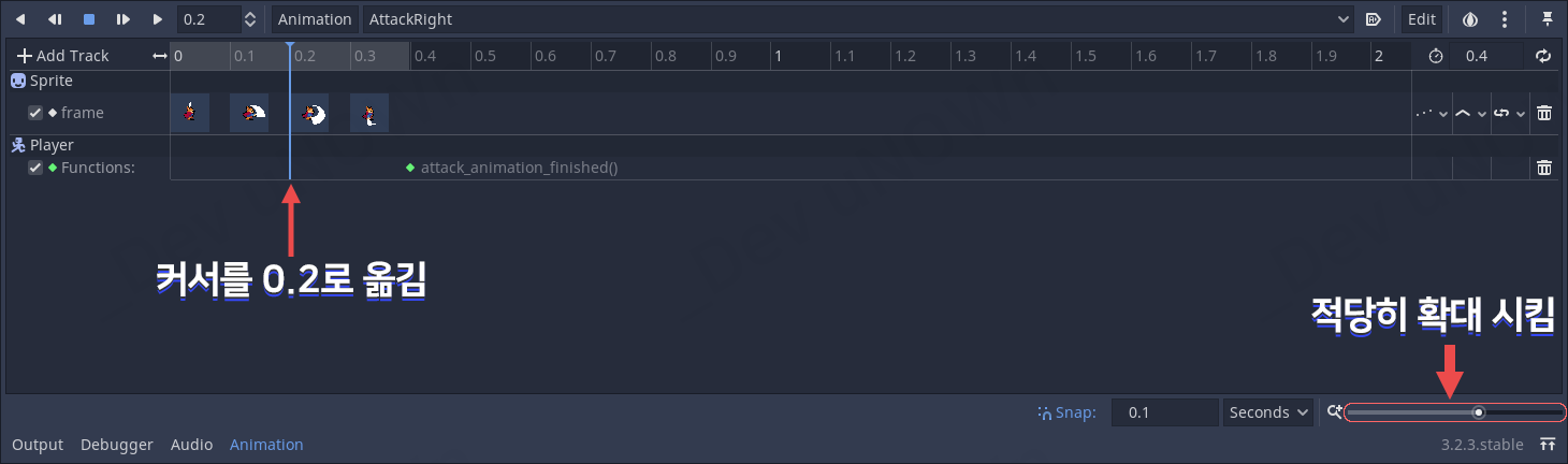 이를 수정하기 위해 다시 애니메이션 에디터를 보도록 하겠습니다.