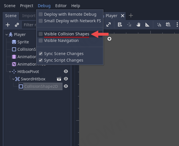 좌측 상단 메뉴에 있는 Debug - Visible Collision Shapes를 체크✔